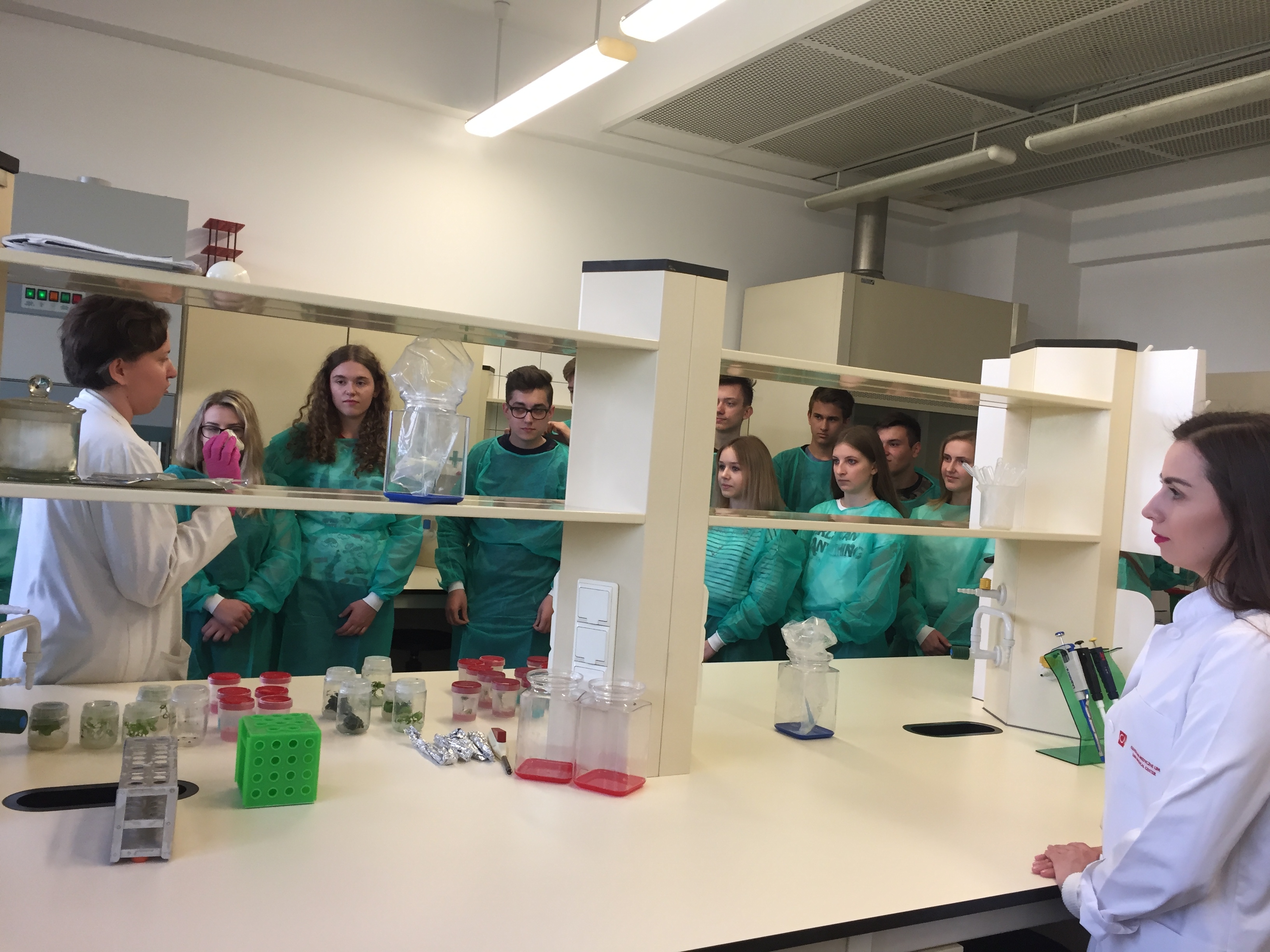 Młodzież podczas wizyty na UW zapoznała się z ofertą edukacyjną uczelni. Następnie wysłuchała wykładu, połączonego z pokazem. Głównym punktem programu były zajęcia laboratoryjne z anatomii roślin. Uczniowie samodzielnie przygotowywali skomplikowane preparaty mikroskopowe. Podczas obserwacji mikroskopowych dokonywali analizy budowy histologicznej organów roślinnych. Niezwykle emocjonujące były ćwiczenia polegające na samodzielnym założeniu własnej hodowli „ in vitro” czyli tzw. uprawy „w szkle”. Uczniowie brali także udział w zajęciach terenowych na Polach Mokotowskich, pokazywały działania mające na celu ochronę różnorodności gatunkowej owadów i roślin przez nie zapylanych. Na uczniów LO nr I im. St. Staszica czekało jeszcze wiele innych atrakcji.