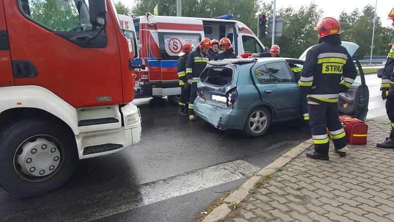 Po przybyciu na miejsce zdarzenia strażacy, stwierdzili, że doszło do zderzenia samochodu osobowego marki Nissan z samochodem ciężarowym marki Renault. Na miejscu był już patrol policji. Od funkcjonariuszy uzyskali informację, że kierujący ciężarowym samochodem uderzył w znajdujący się przed nim samochód osobowy.