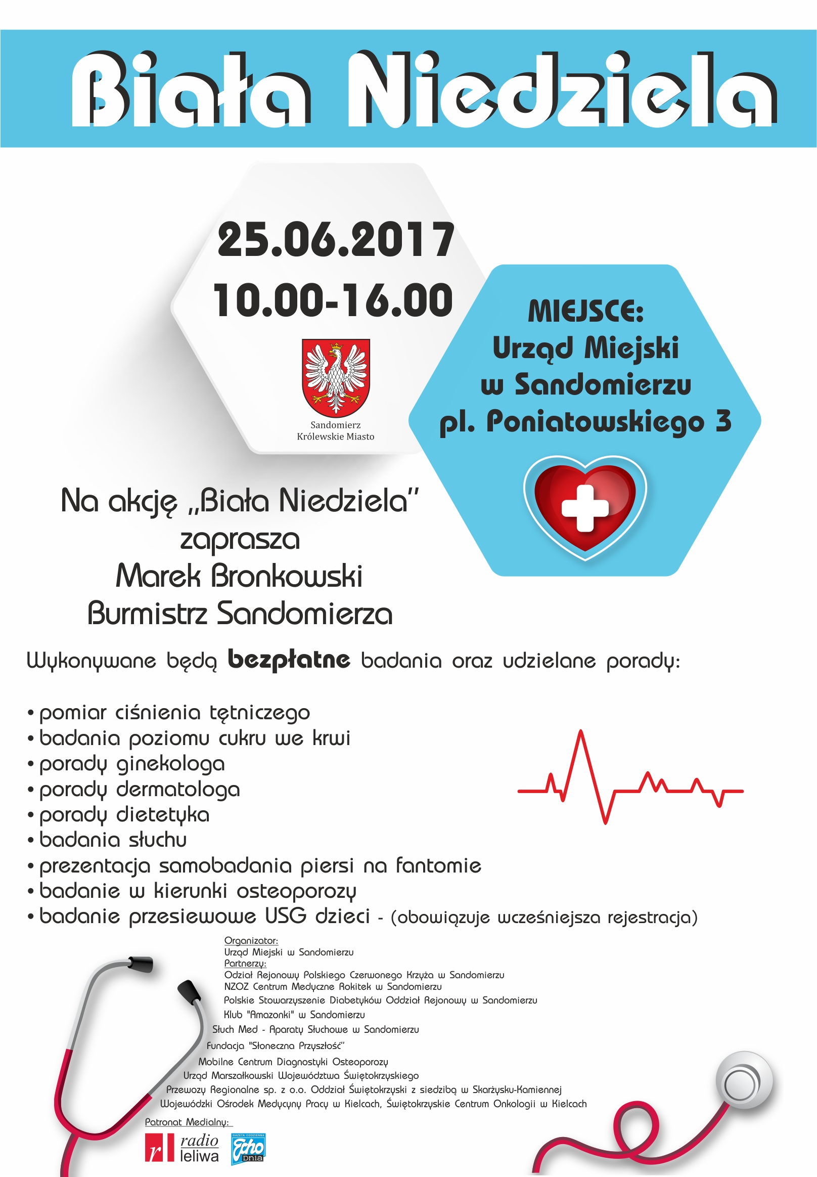 Partnerami akcji są: Wojewódzki Ośrodek Medycyny Pracy w Kielcach, Świętokrzyskie Centrum Onkologii, Przewozy Regionalne sp. z o.o. Oddział Świętokrzyski z siedzibą w Skarżysku – Kamiennej oraz Urząd Miasta w Sandomierzu.