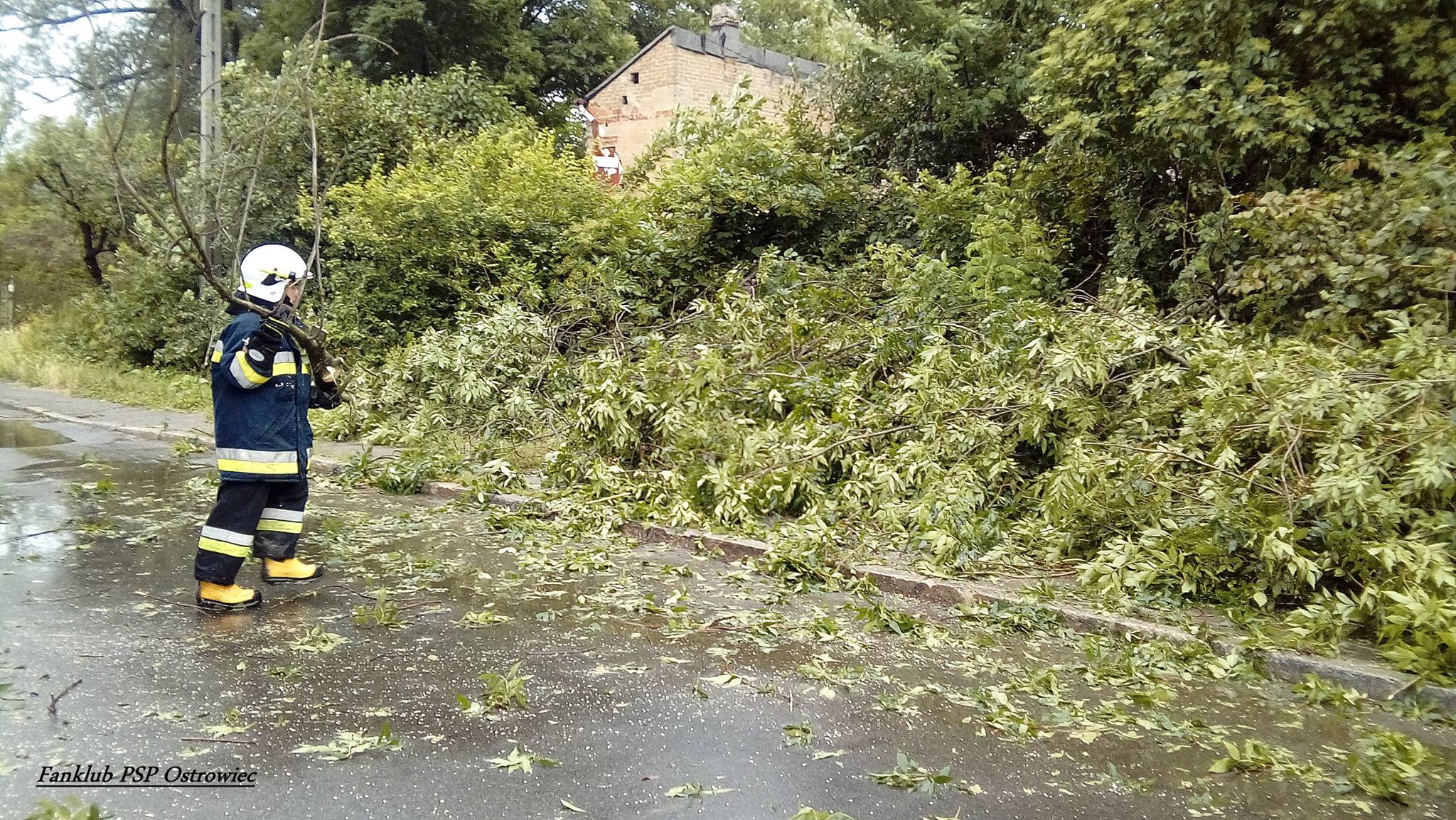 Połamane drzewa, pozrywane linie wysokiego napięcia, uszkodzone i zerwane dachy - to skutki burzy jaka przeszła dzisiaj nad Ostrowcem Św. i jego okolicami. Strażacy z KP PSP w Ostrowcu Św. dostali 30 zgłoszeń do 15 zdarzeń.