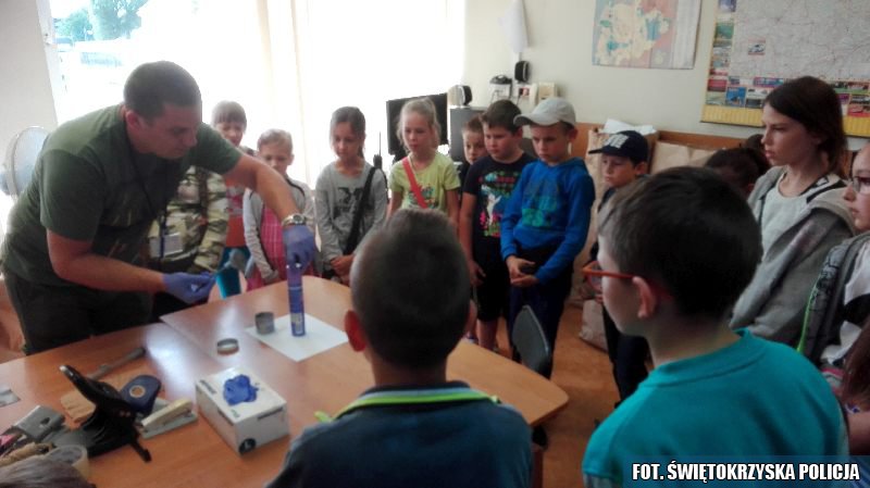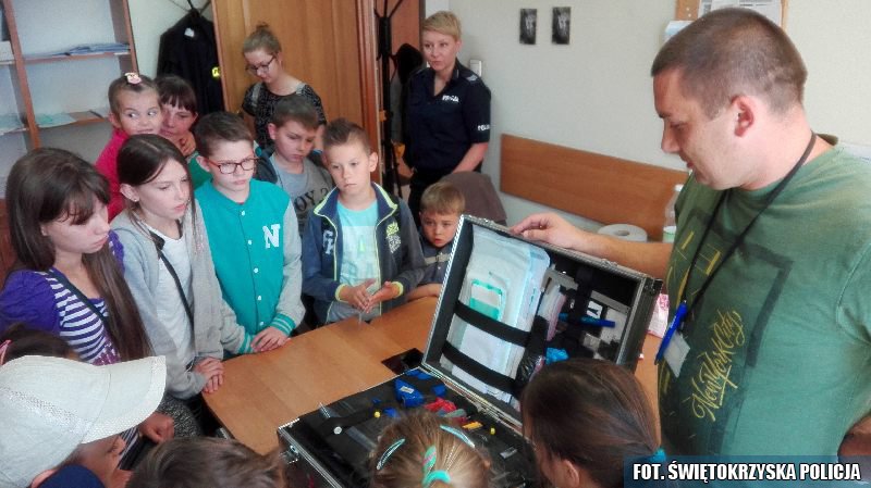 Ostrowieccy policjanci gościli w swojej jednostce grupę dzieci, które spędzają wakacje na zorganizowanych półkoloniach przez dyrekcję Domu Kultury w Ćmielowie. Podczas wycieczki uczestnicy mogli obejrzeć pomieszczenia, gdzie obsługiwany jest monitoring miejski oraz specjalne pomieszczenie, gdzie odbywają się okazania. Do atrakcji, które najbardziej podobały się najmłodszym był pokaz zabezpieczania śladów przez technika kryminalistyki.