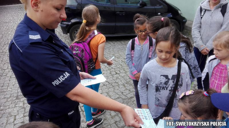 W związku czasem letniego wypoczynku policjantki rozmawiały z dziećmi na temat zasad bezpieczeństwa podczas spędzania wolnego czasu. Dodatkowo uczestnikom wycieczki rozdano ulotki w ramach akcji MSWiA „Kręci mnie bezpieczeństwo nad wodą”. Miłym akcentem dla gości były pamiątkowe fotografie i możliwość obejrzenia policyjnych radiowozów.