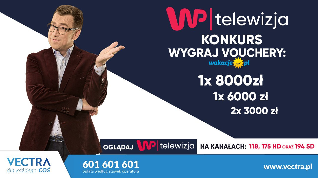 Do 15 grudnia w Vectrze odbywa się konkurs z kanałem WP. W związku z tym prośba o emisję w tym czasie spotu - do pobrania pod tym linkem https://we.tl/R3y5J1ZDim oraz plansz ( w załączeniu), a także wypromowanie konkursu w każdy inny możliwy sposób (FB, www, scroll).