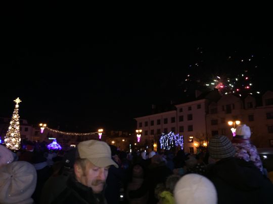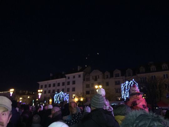 Wspólne rozświetlenie miasta uwieńczyły światełka na niebie.