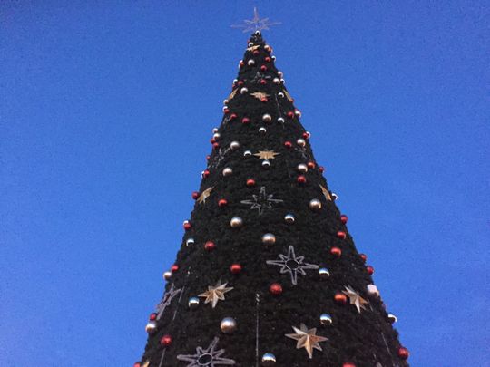Na największej, pełnej ozdób i światełek choince w mieście.