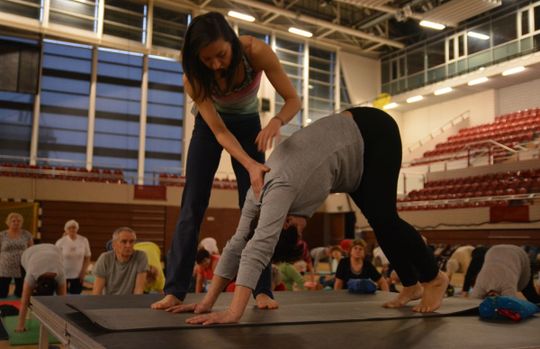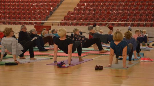 Seniorzy ćwiczą jogę