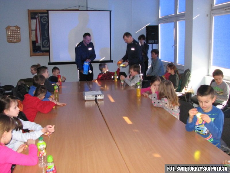 Spotkanie z dziećmi przeprowadził st. asp. Jarosław Szkoda, asystent Wydziału Ruchu Drogowego i st. asp. Grzegorz Rusak, kierownik dzielnicowych opatowskiej komendy. Uczniowie aktywnie uczestniczyły w spotkaniu, chętnie odpowiadały na pytania z zakresu bezpieczeństwa w ruchu drogowym. Z uwagą obejrzały też prezentowane filmy edukacyjne. Dużym zainteresowaniem dzieci cieszył się pokaz policyjnego wyposażenia wykorzystywanego podczas zabezpieczania imprez masowych oraz pokaz radiowozu, w którym maluchy miały okazję usiąść za kierownicą i przez chwilę wczuć się w role policjanta.