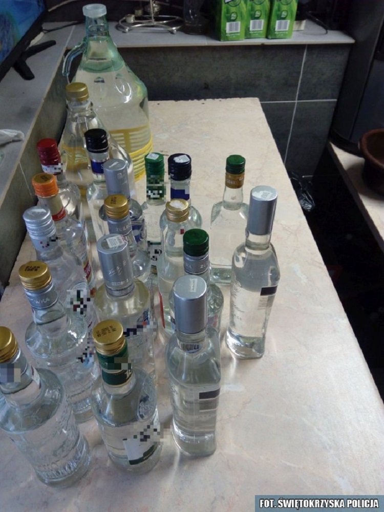 W środę 29 marca, policjanci zatrzymali 50– letniego mieszkańca powiatu jędrzejowskiego. Funkcjonariusze podejrzewali, iż może się trudnić nielegalnym procederem, związanym z produkcją i sprzedażą wyrobów spirytusowych, które miały trafiać do okolicznych mieszkańców. W trakcie przeszukania posesji mężczyzny funkcjonariusze ujawnili linię produkcyjną do wytwarzania alkoholu o wartości 15000 złotych w trakcie procesu destylacji. Dodatkowo policjanci zabezpieczyli 17 półlitrowych butelek z zawartością bezbarwnej cieczy, o woni alkoholu, bez polskich znaków akcyzy oraz 3 pełne beczki o pojemności 200 litrów z przygotowanym zacierem do produkcji bimbru.