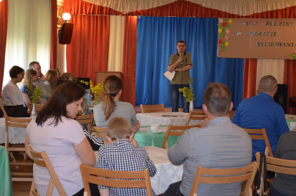 Istotne treści o budowaniu więzi w rodzinie przekazali prelegenci specjaliści: Tomasz Kryj psycholog z Poradni Psychologiczno- Pedagogicznej, Paweł Walesic przedstawiciel Powiatowego Centrum Pomocy Rodzinie, Teresa Borek psycholog Specjalnego Ośrodka Szkolno-Wychowawczego oraz prezes Stowarzyszenia na Rzecz Osób z Autyzmem i Innymi Niepełnosprawnościami „Niebieski Jeżyk” Barbara Sęderowska, która przybliżyła świat relacji z dzieckiem autystycznym .