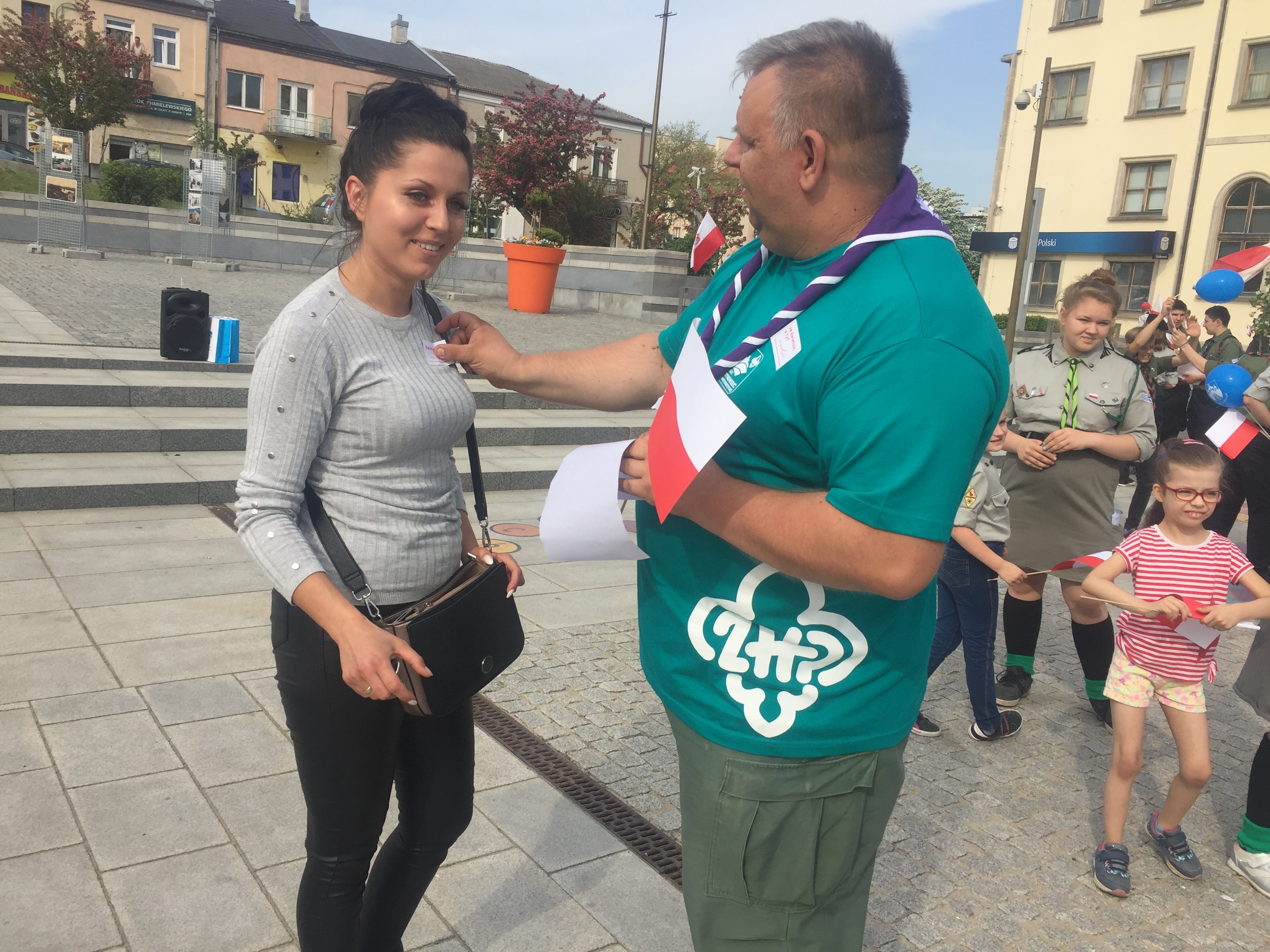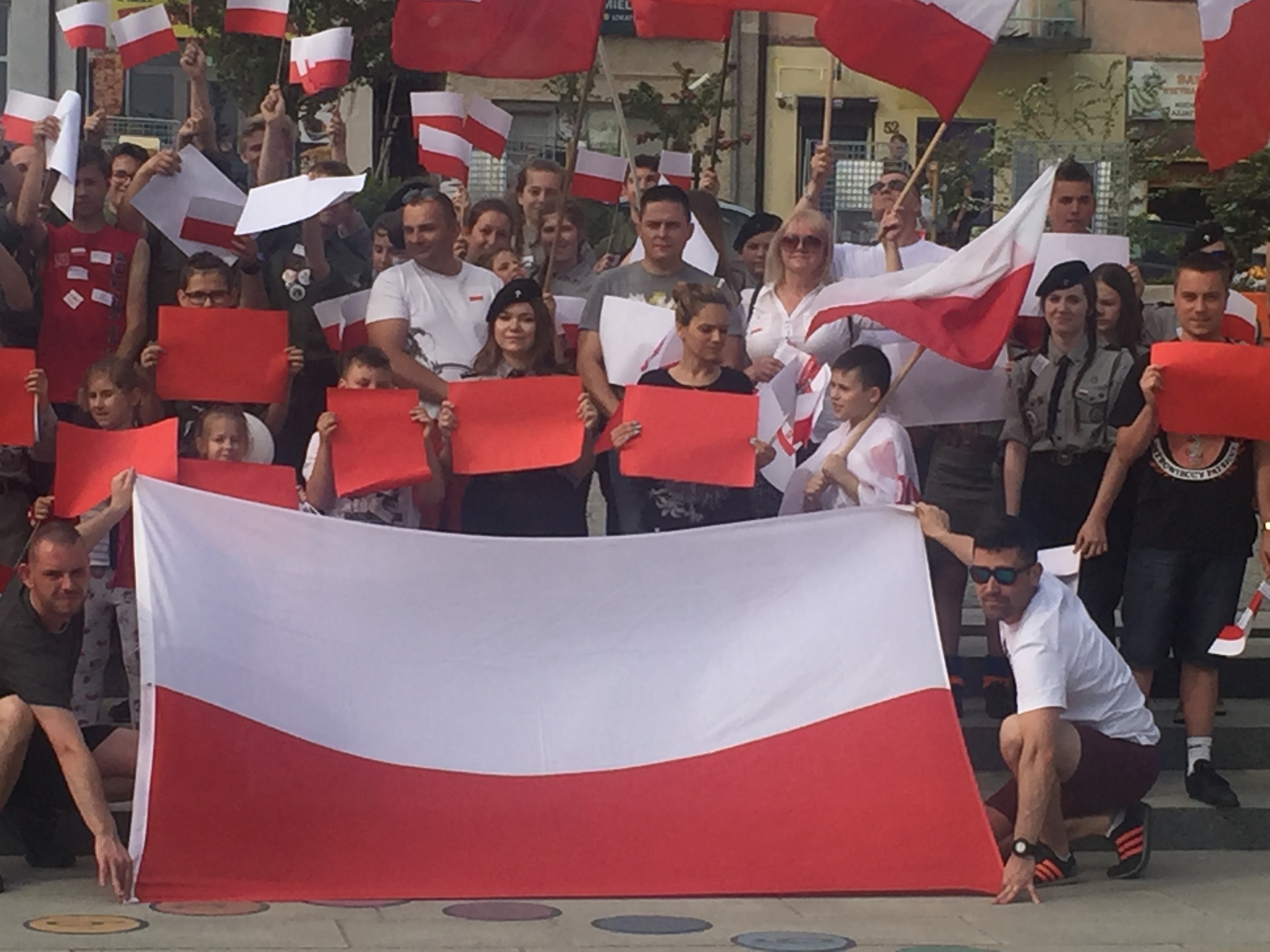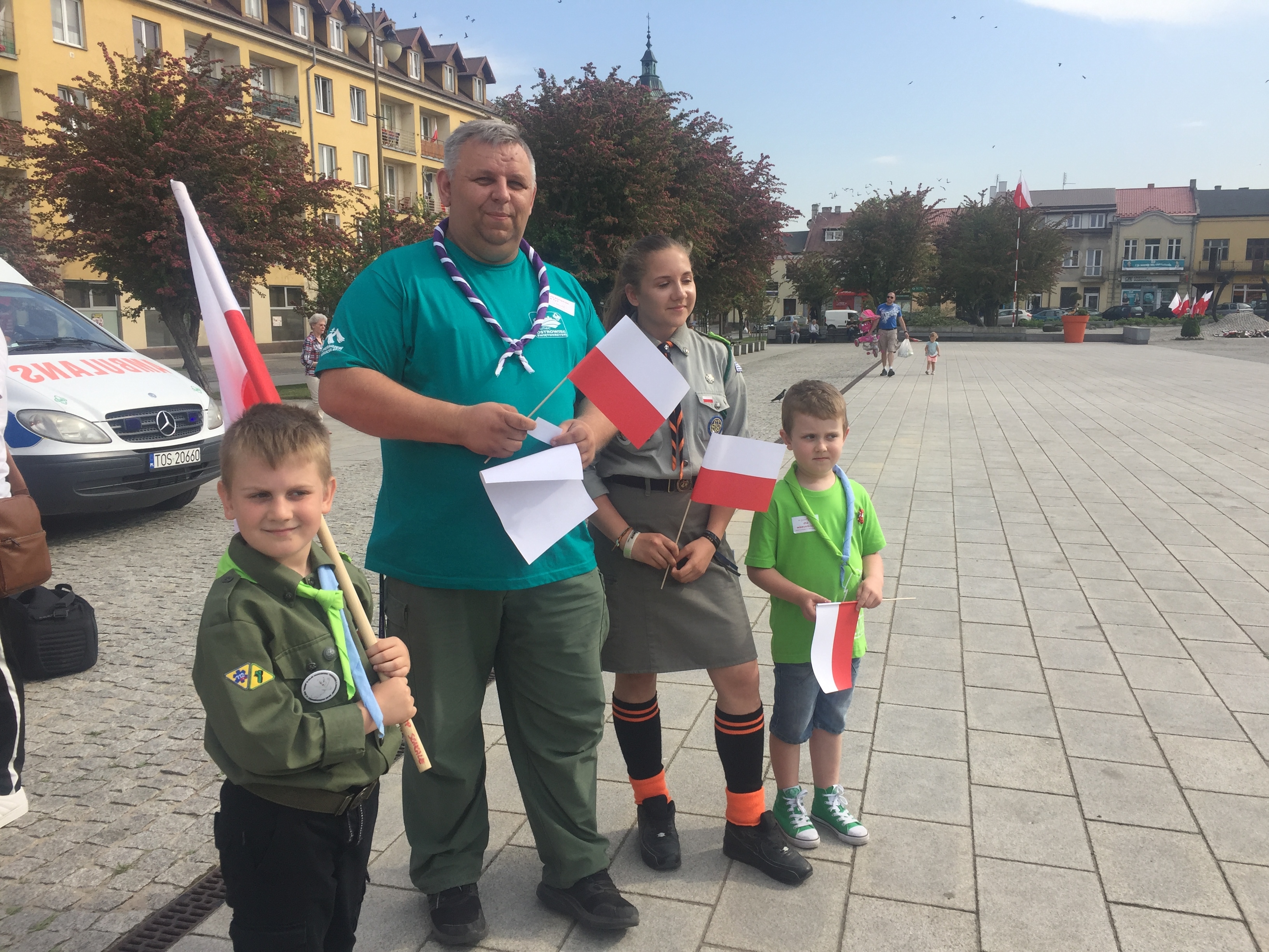 W ramach harcerskiej akcji "Oflaguj się" mieszkańcy Ostrowca z flagami spotkali się o godz. 16.00 na Rynku. Podczas happeningu harcerze wręczali chorągiewki i specjalne naklejki.