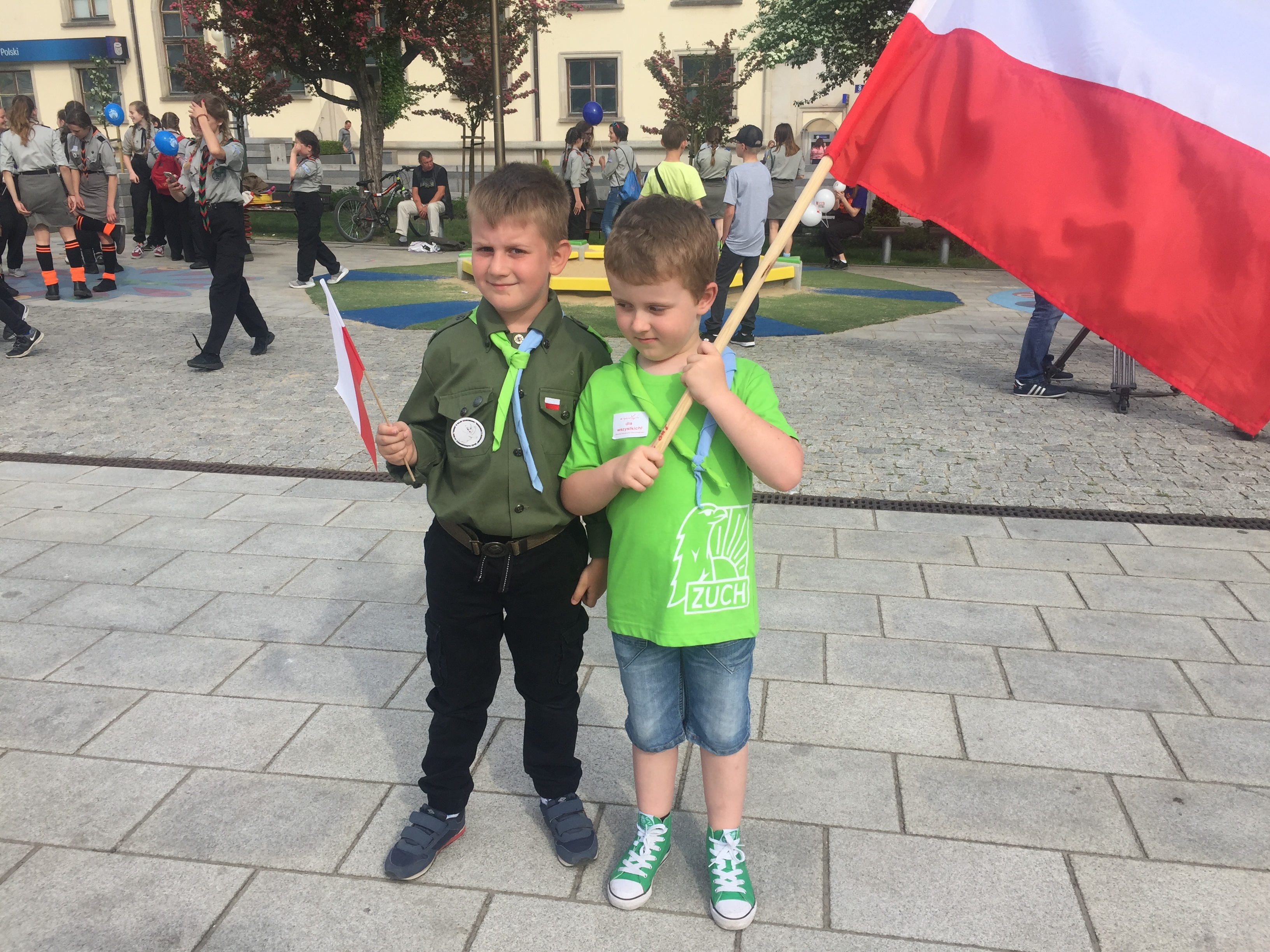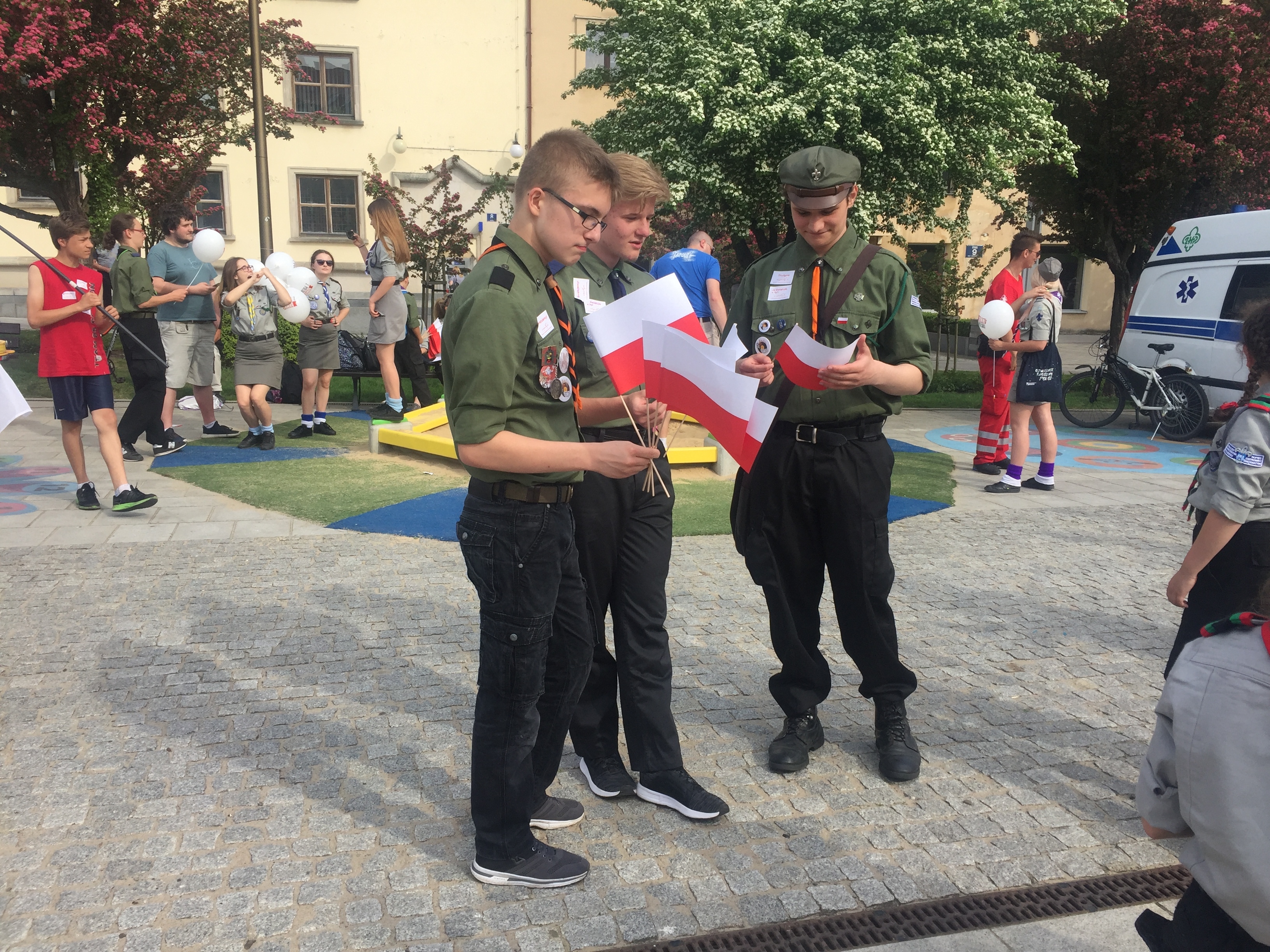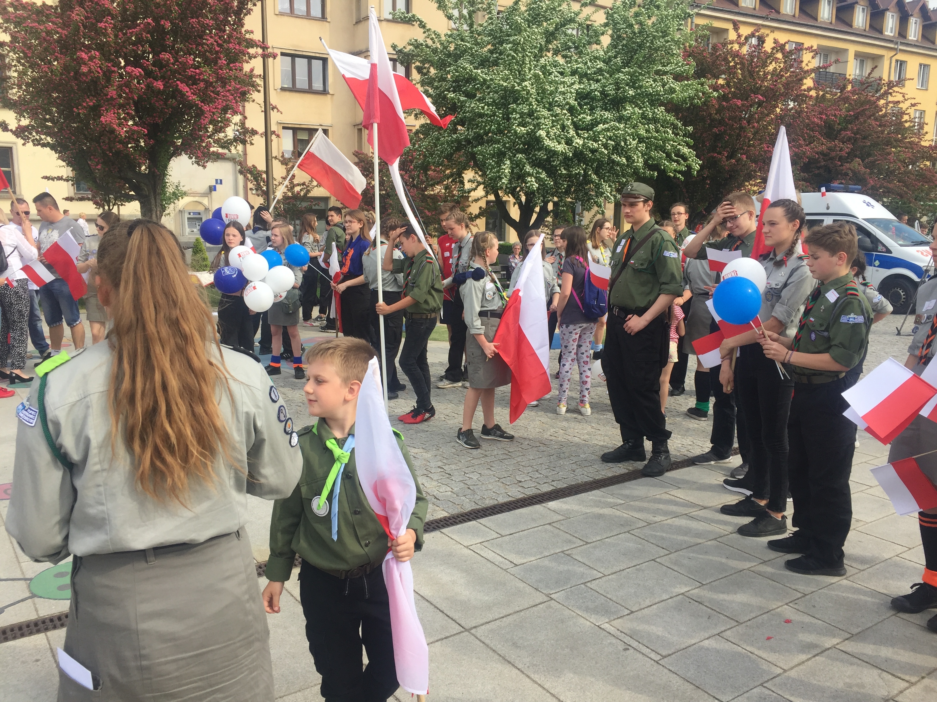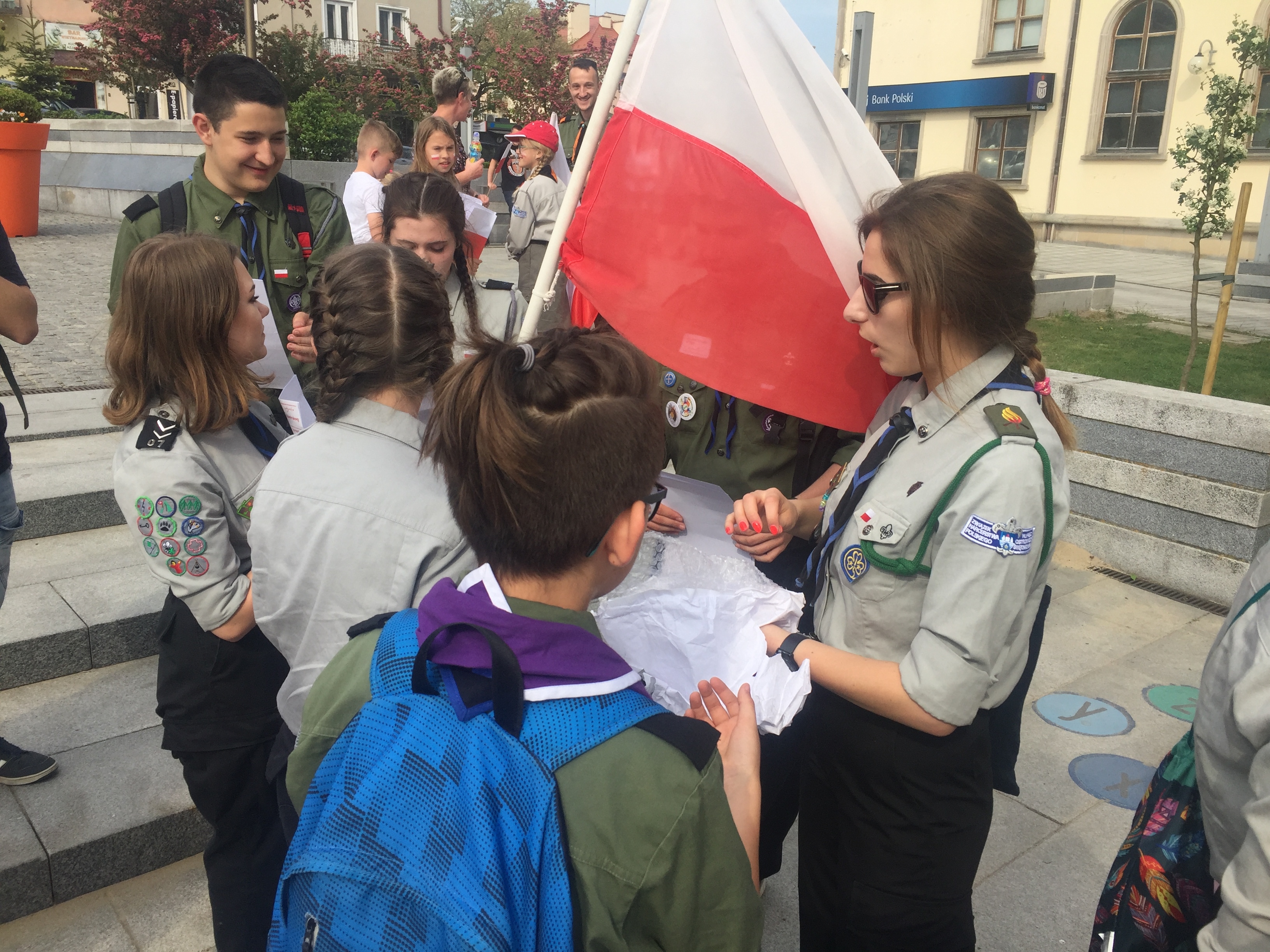 W ramach harcerskiej akcji "Oflaguj się" mieszkańcy Ostrowca z flagami spotkali się o godz. 16.00 na Rynku. Podczas happeningu harcerze wręczali chorągiewki i specjalne naklejki.
