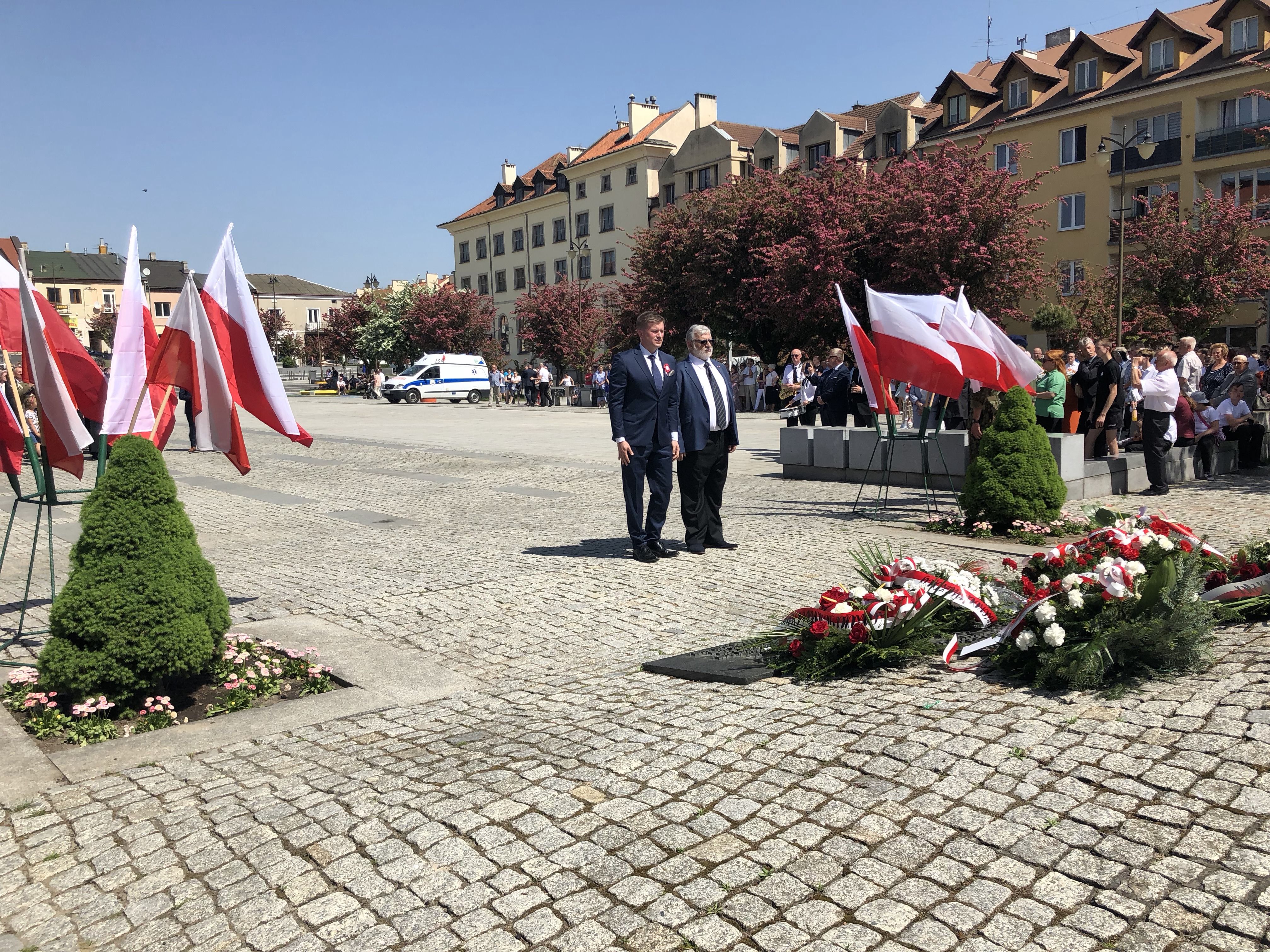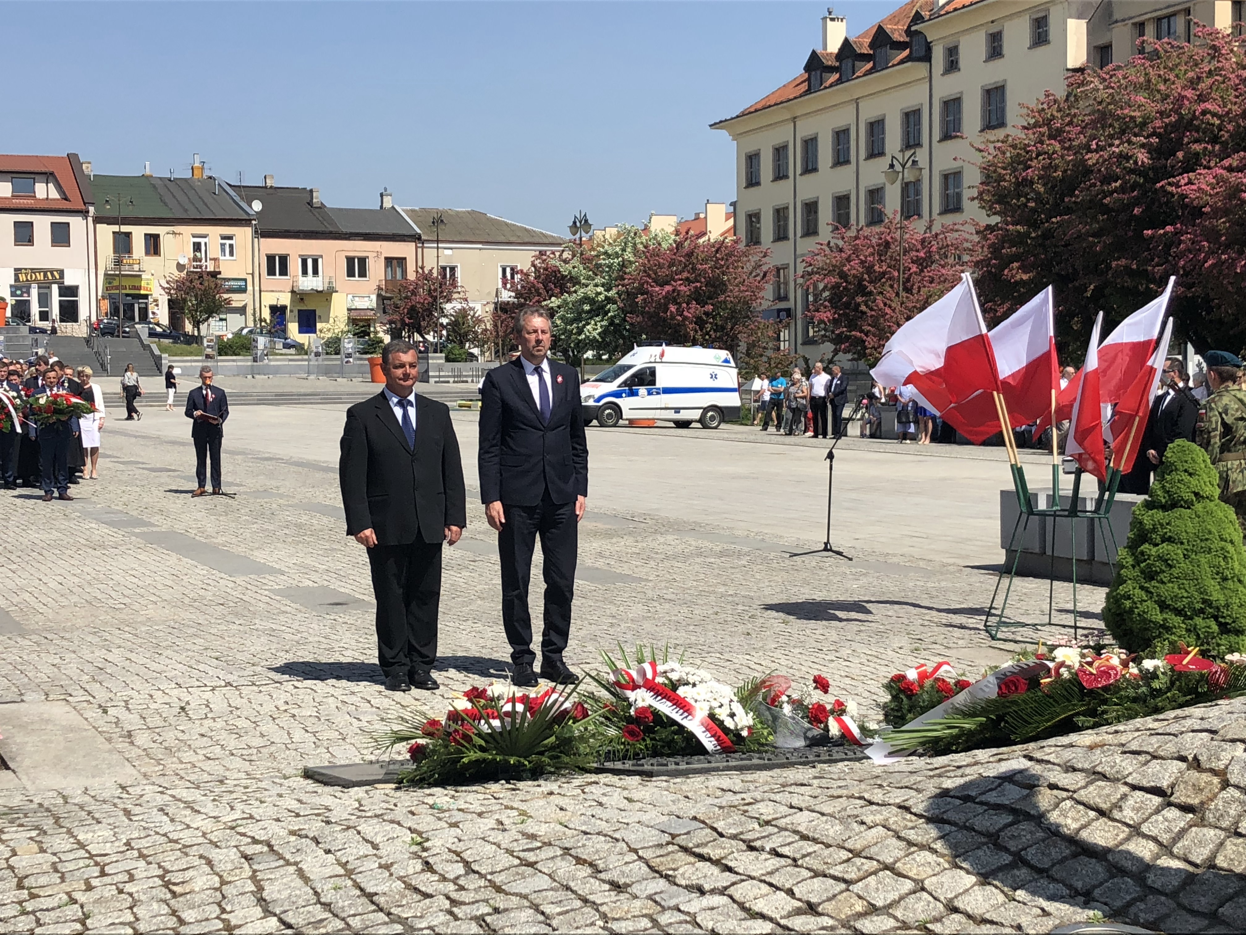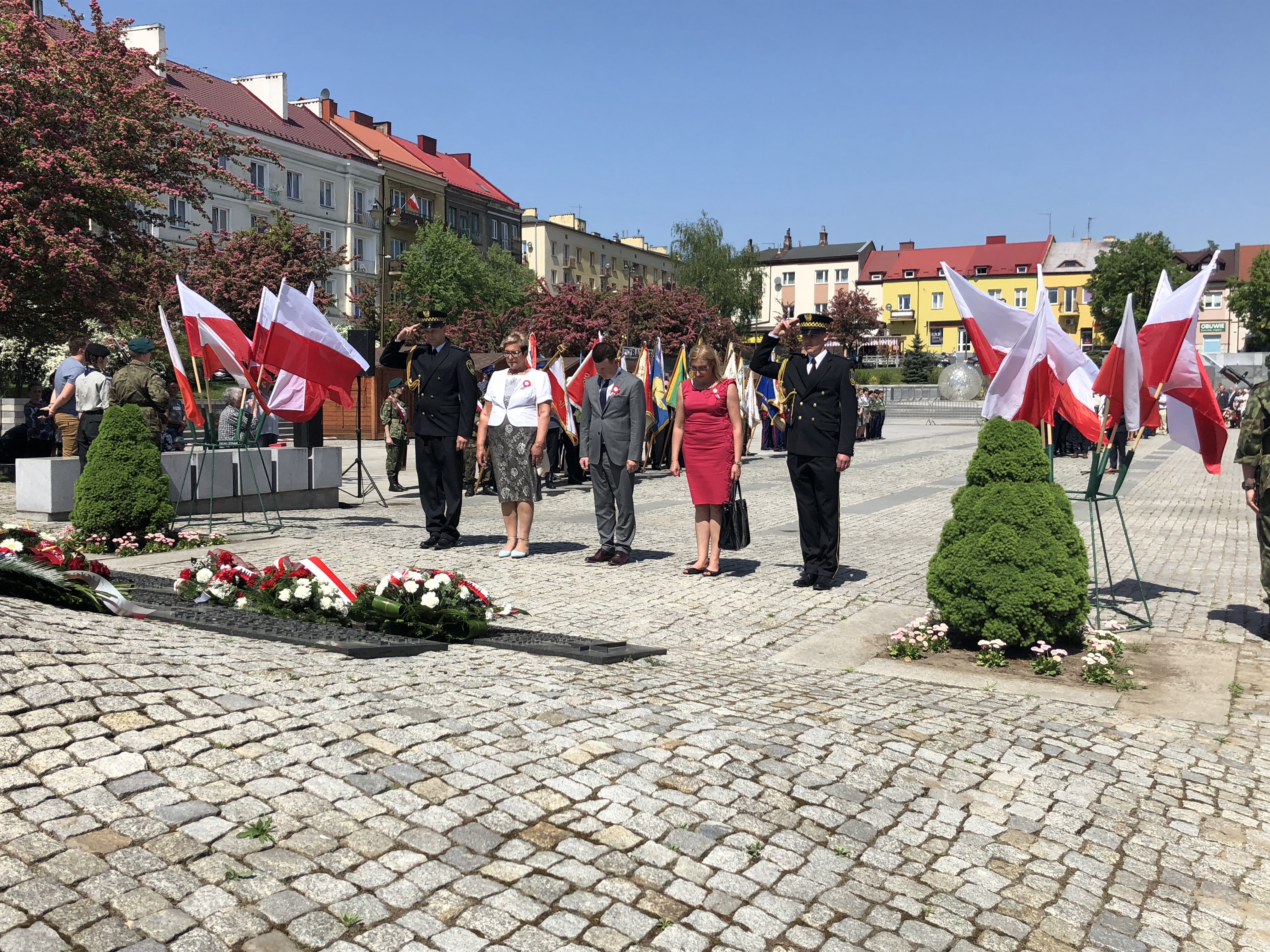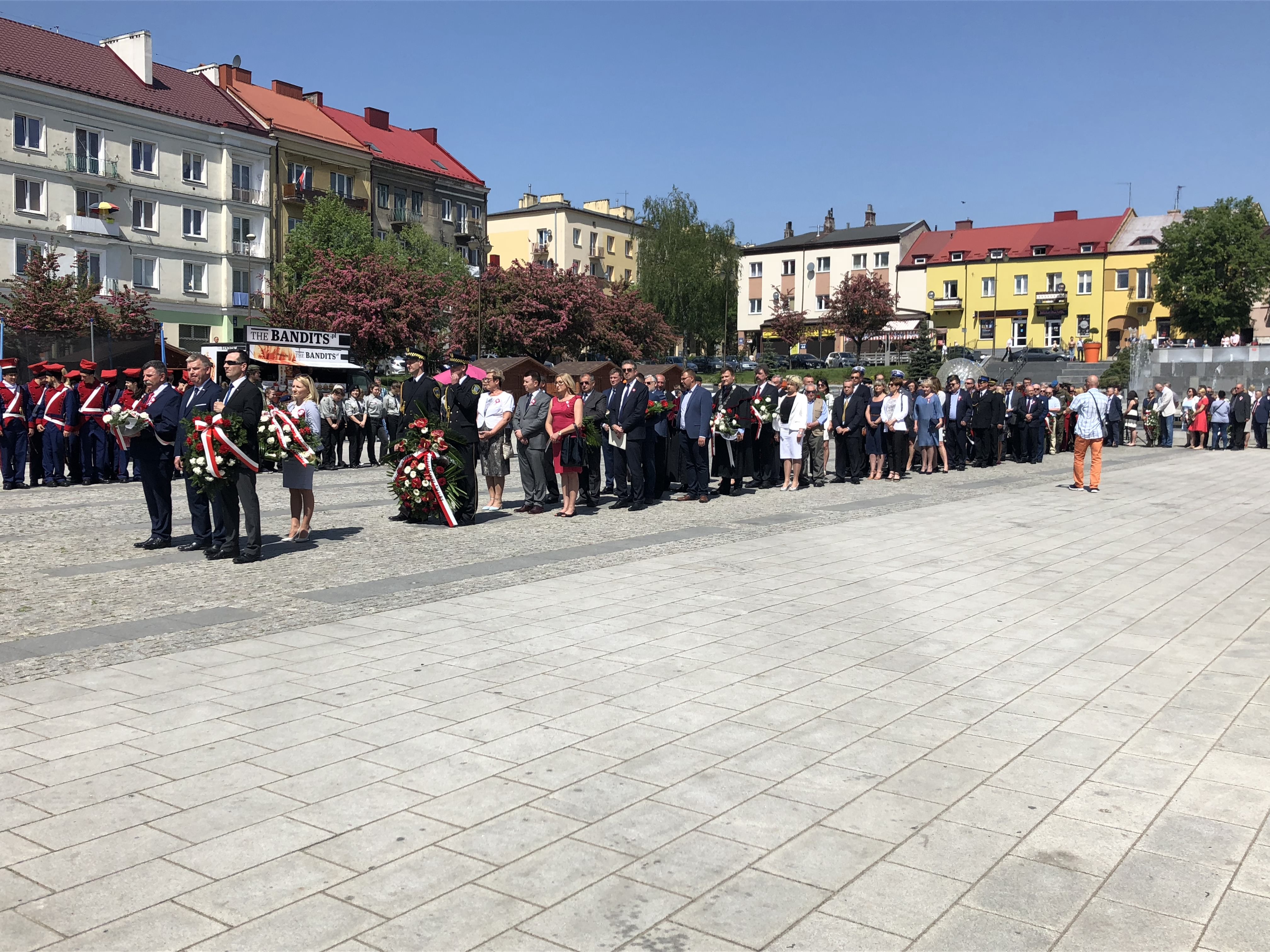 W 227. rocznicę uchwalenia Konstytucji 3 Maja na Rynku w Ostrowcu Świętokrzyskim spotkali się parlamentarzyści, samorządowcy, delegacje związków, stowarzyszeń, organizacji, przedstawiciele zakładów pracy, szkół, a także mieszkańcy miasta.