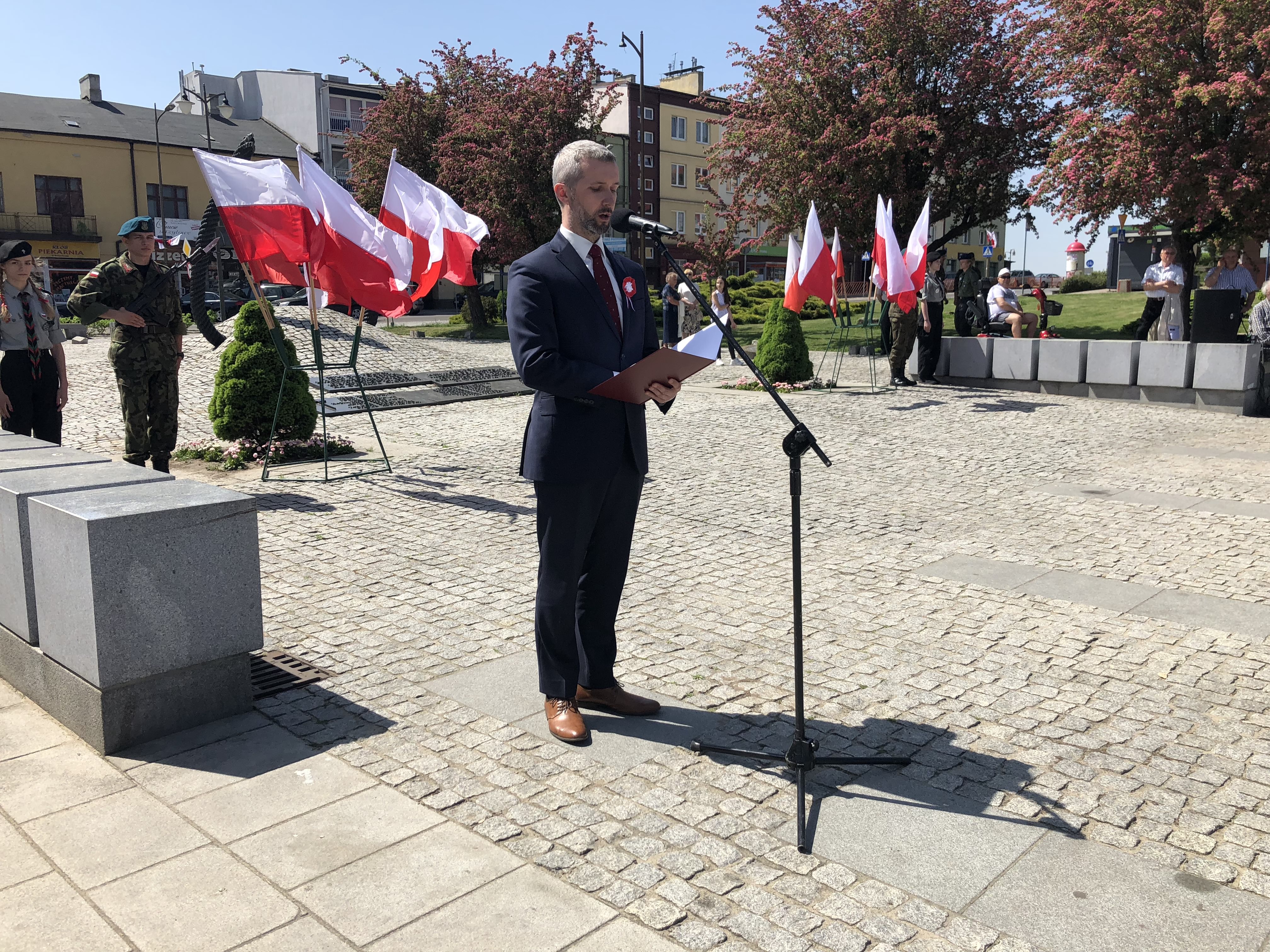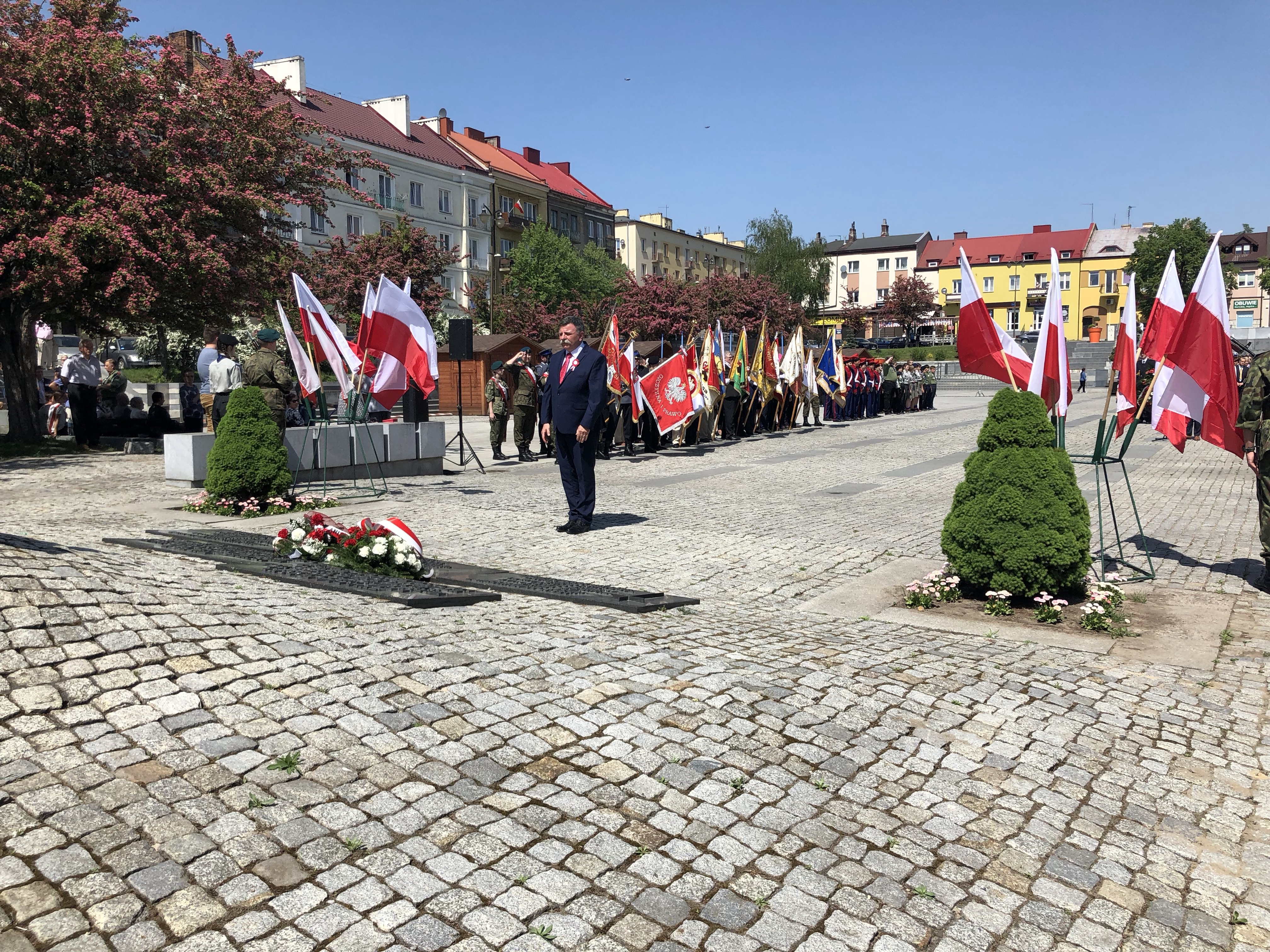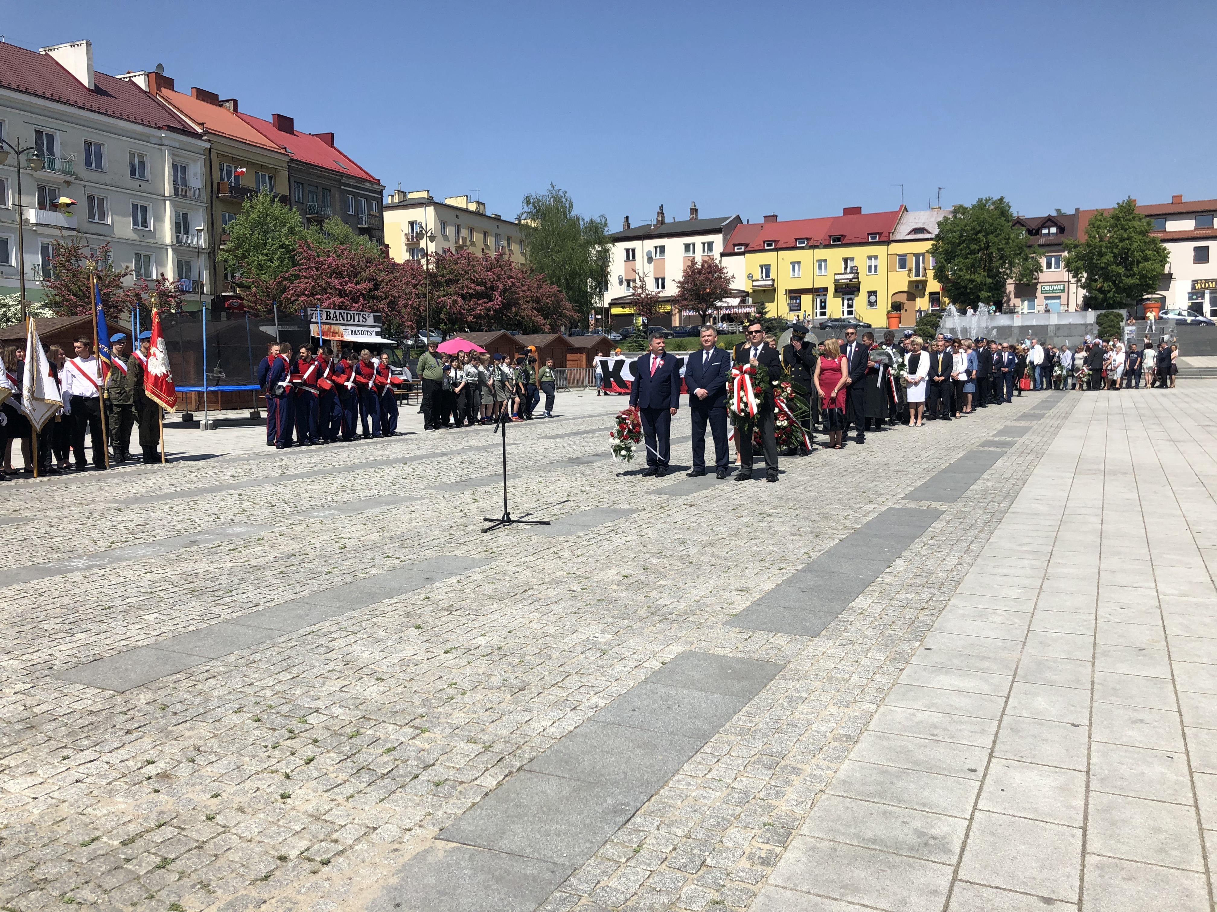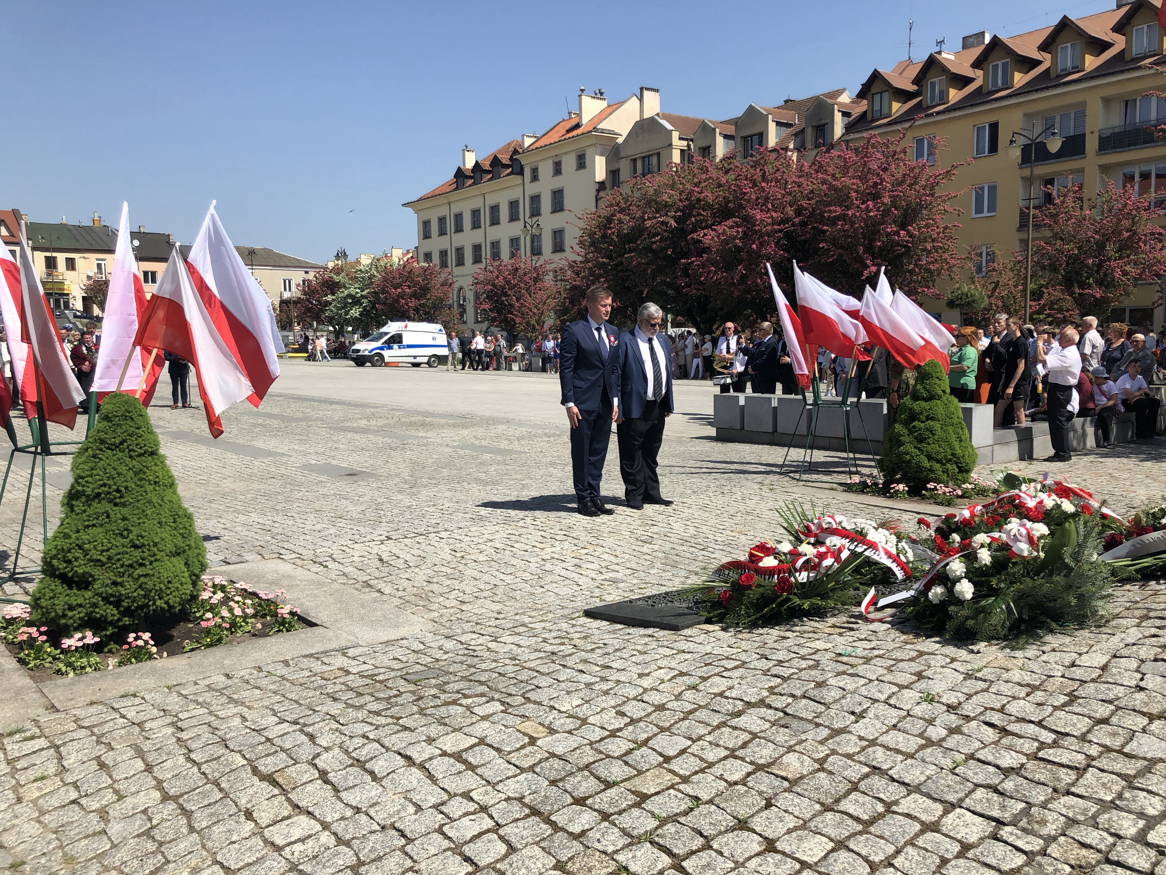 W 227. rocznicę uchwalenia Konstytucji 3 Maja na Rynku w Ostrowcu Świętokrzyskim spotkali się parlamentarzyści, samorządowcy, delegacje związków, stowarzyszeń, organizacji, przedstawiciele zakładów pracy, szkół, a także mieszkańcy miasta.