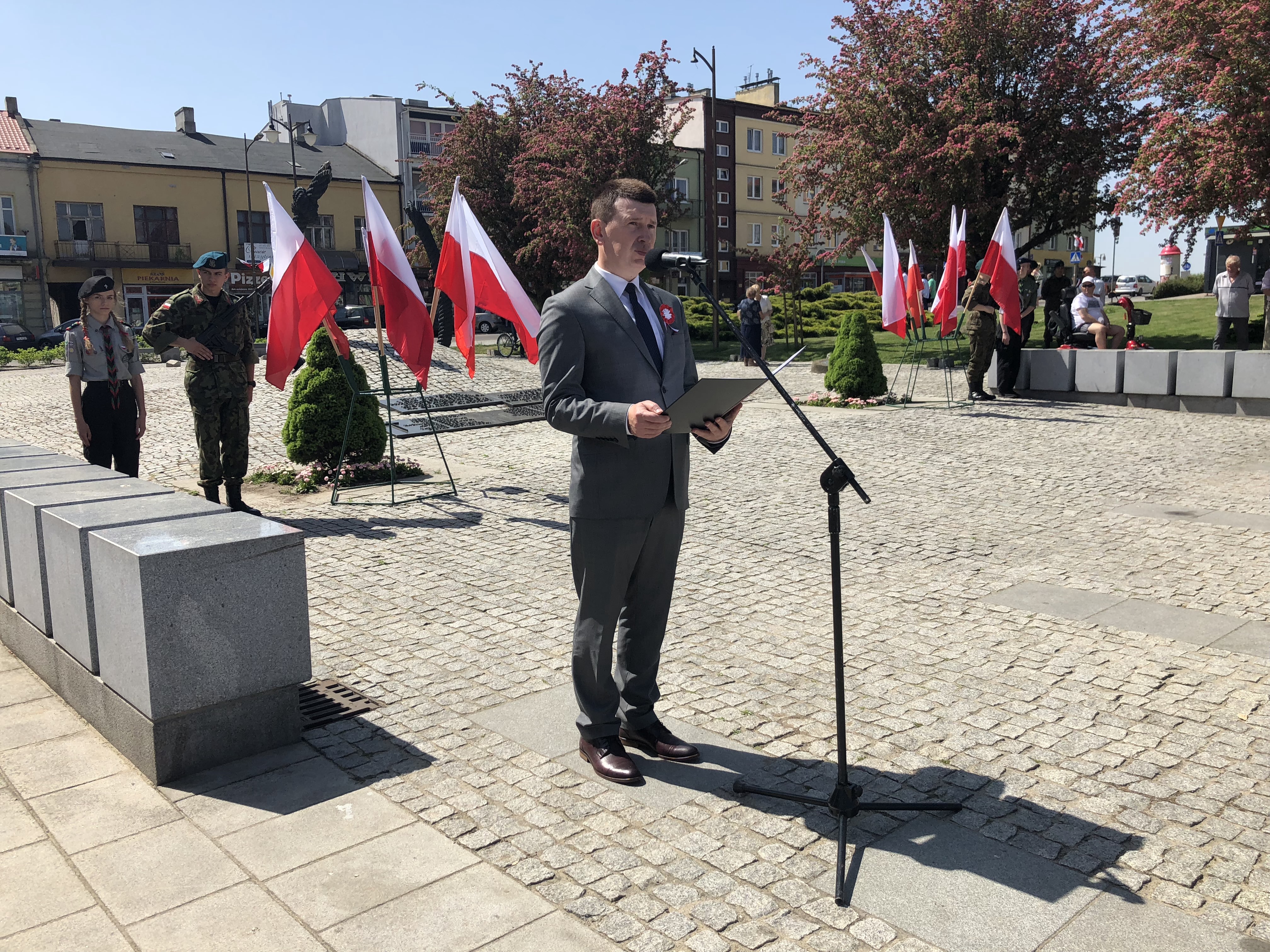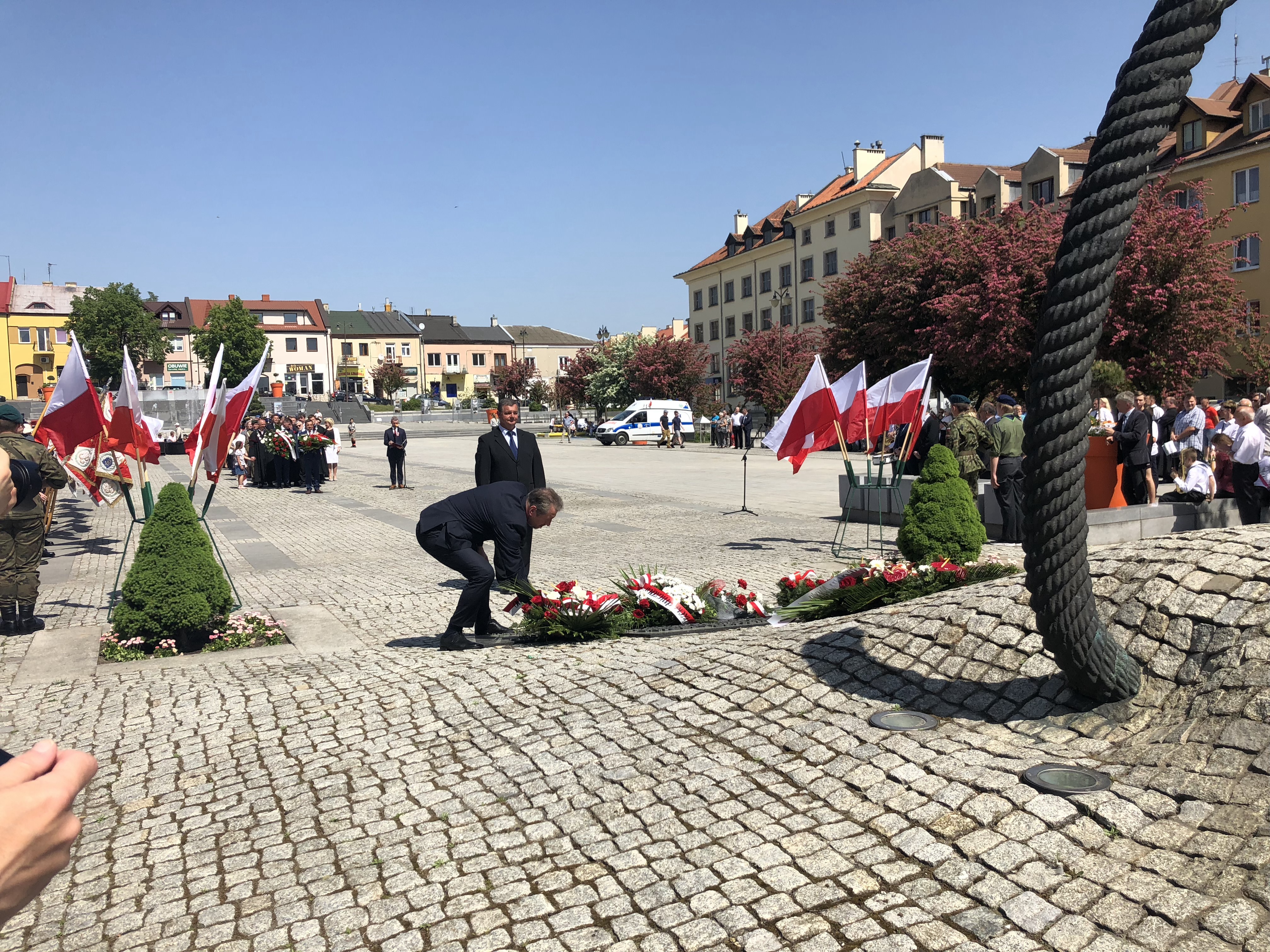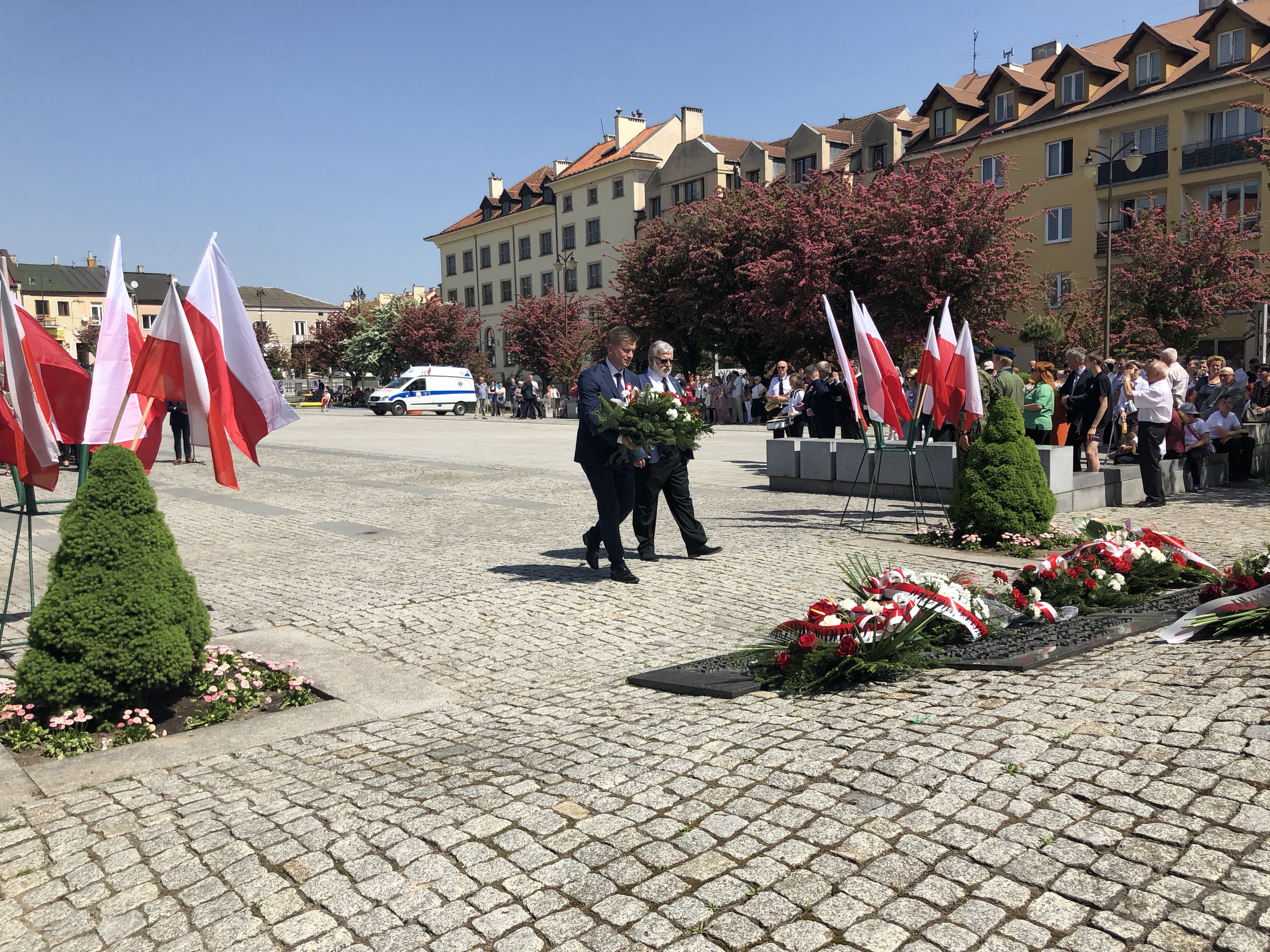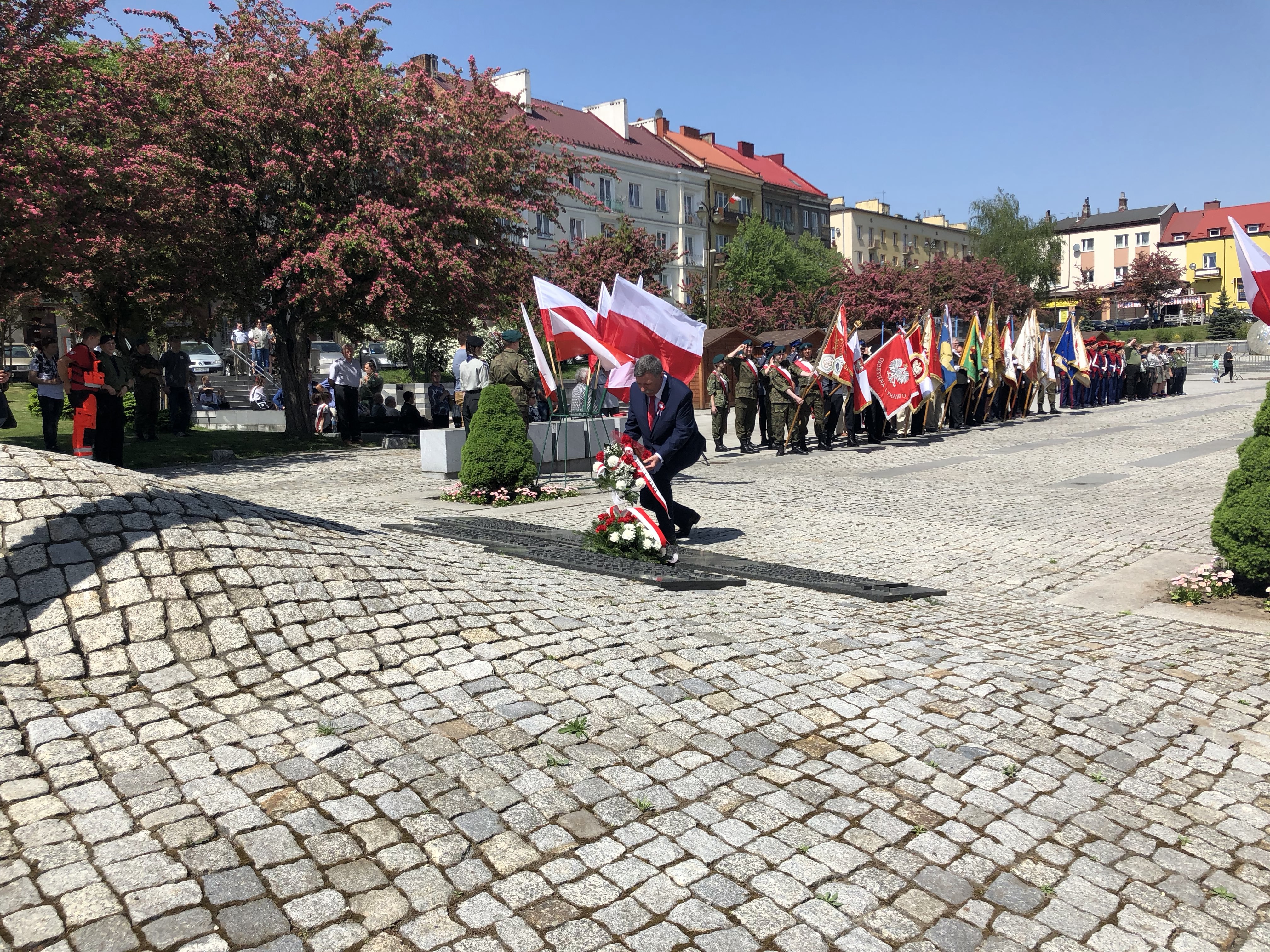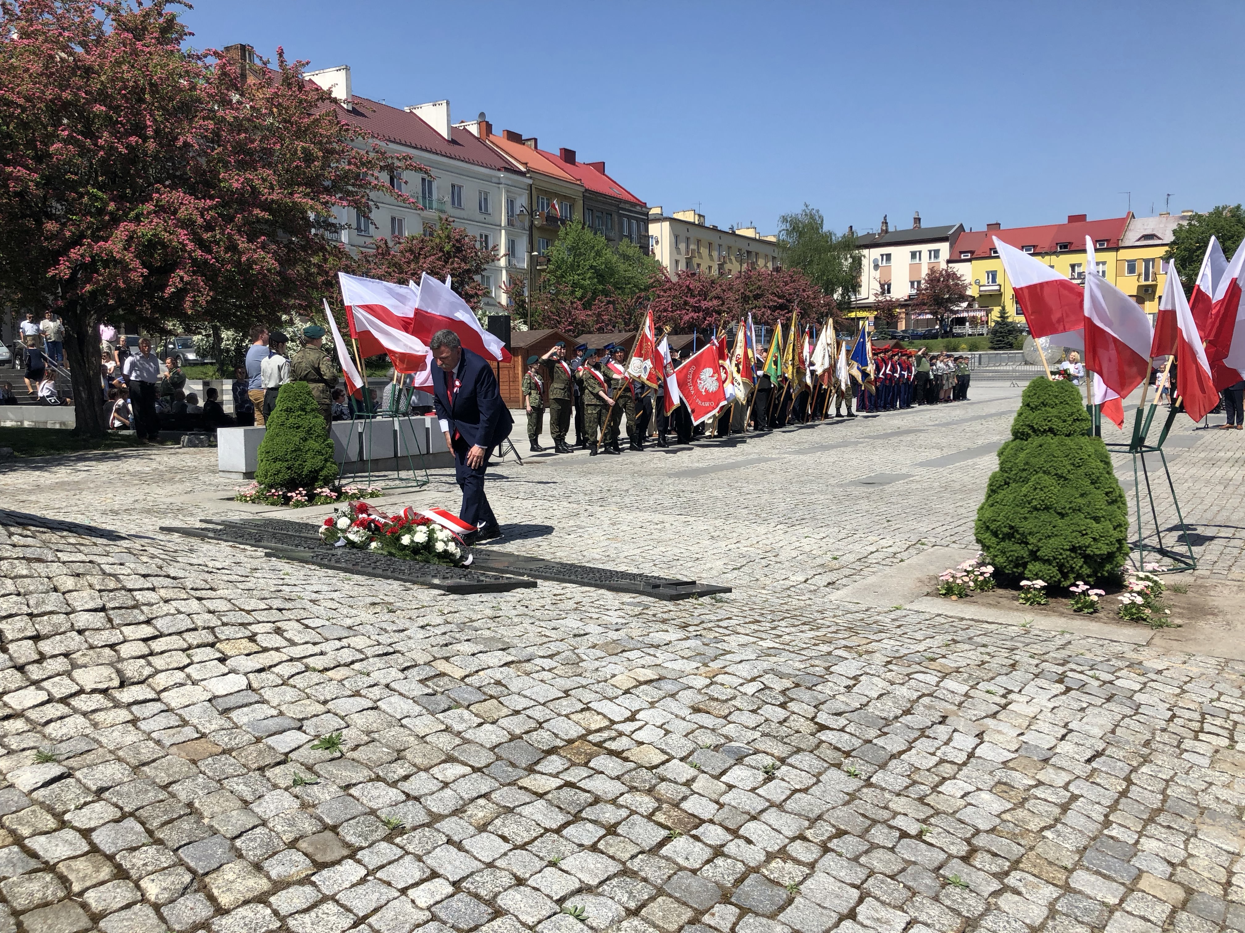 W 227. rocznicę uchwalenia Konstytucji 3 Maja na Rynku w Ostrowcu Świętokrzyskim spotkali się parlamentarzyści, samorządowcy, delegacje związków, stowarzyszeń, organizacji, przedstawiciele zakładów pracy, szkół, a także mieszkańcy miasta.