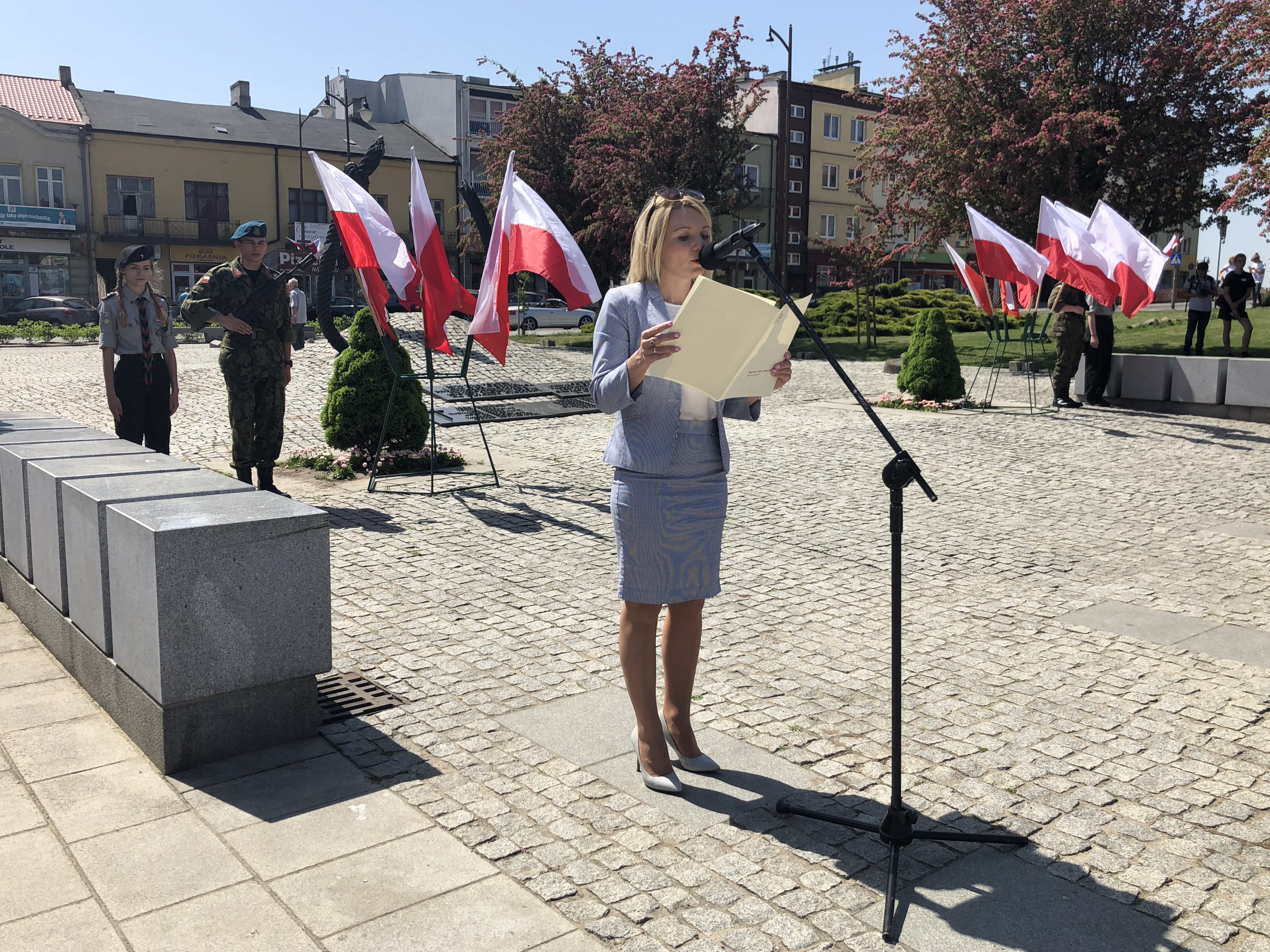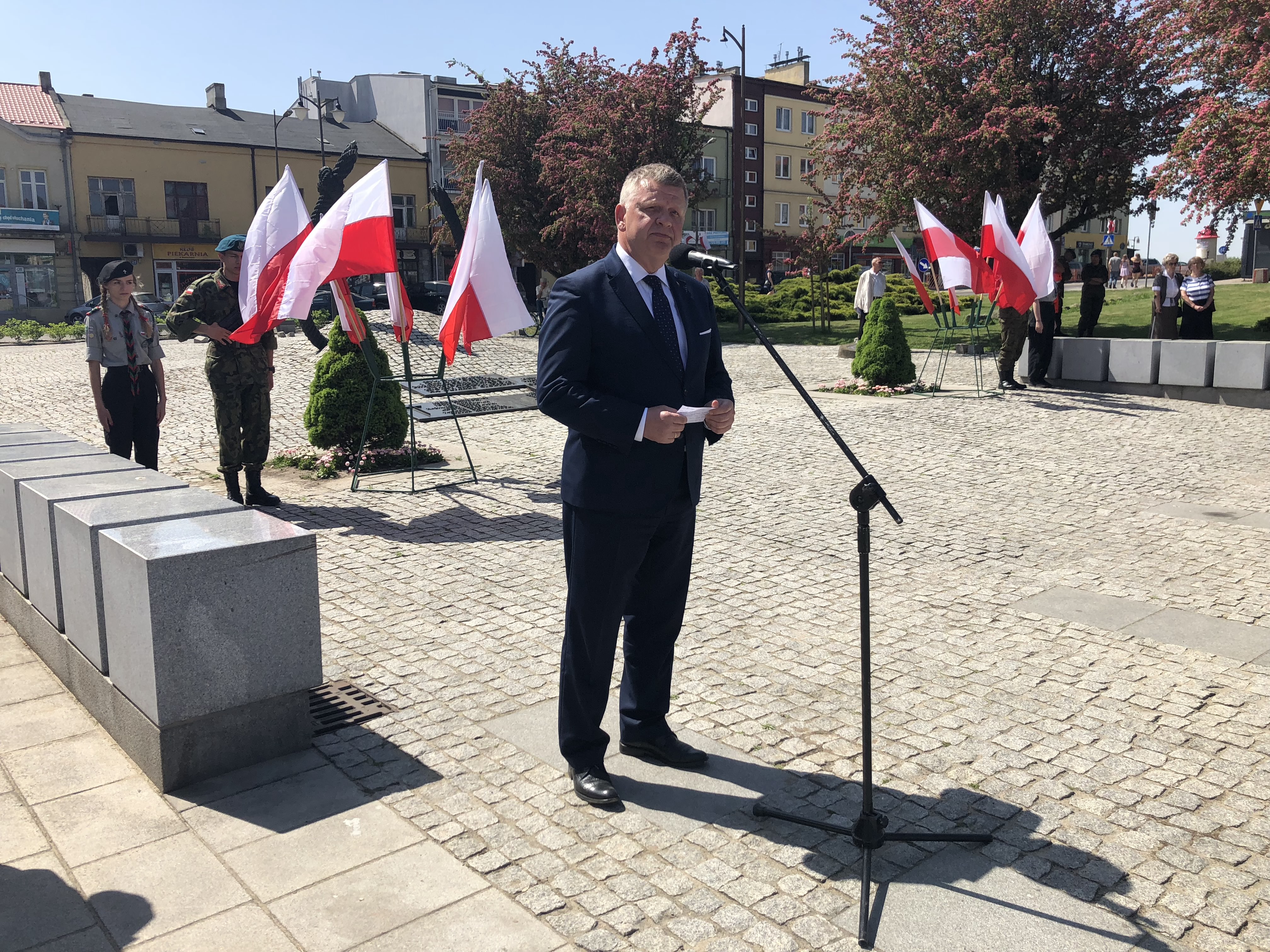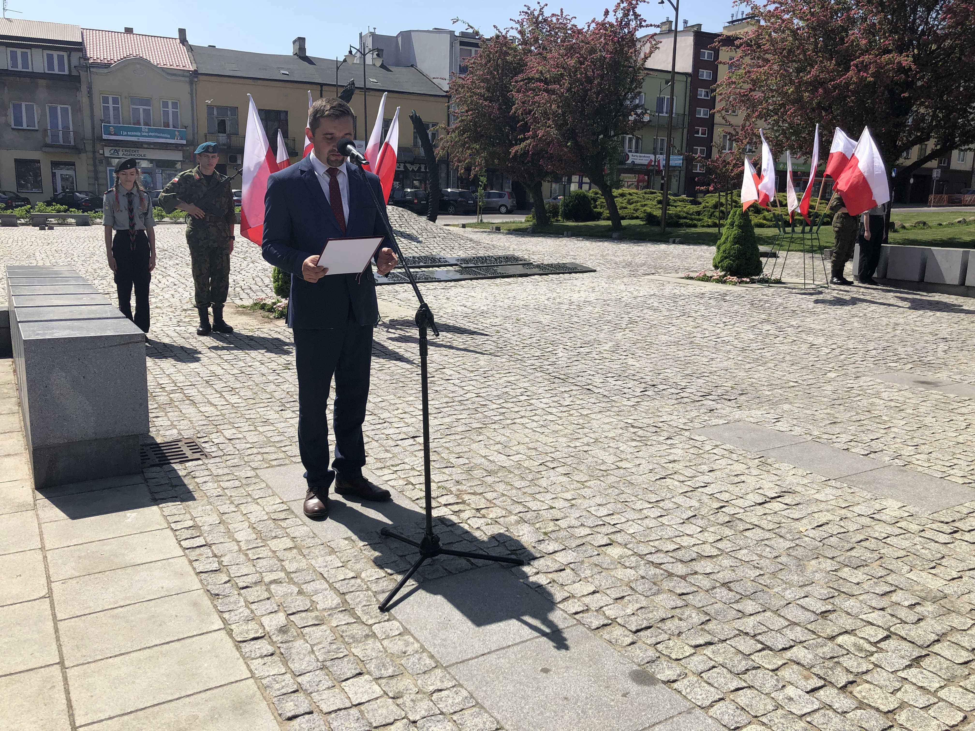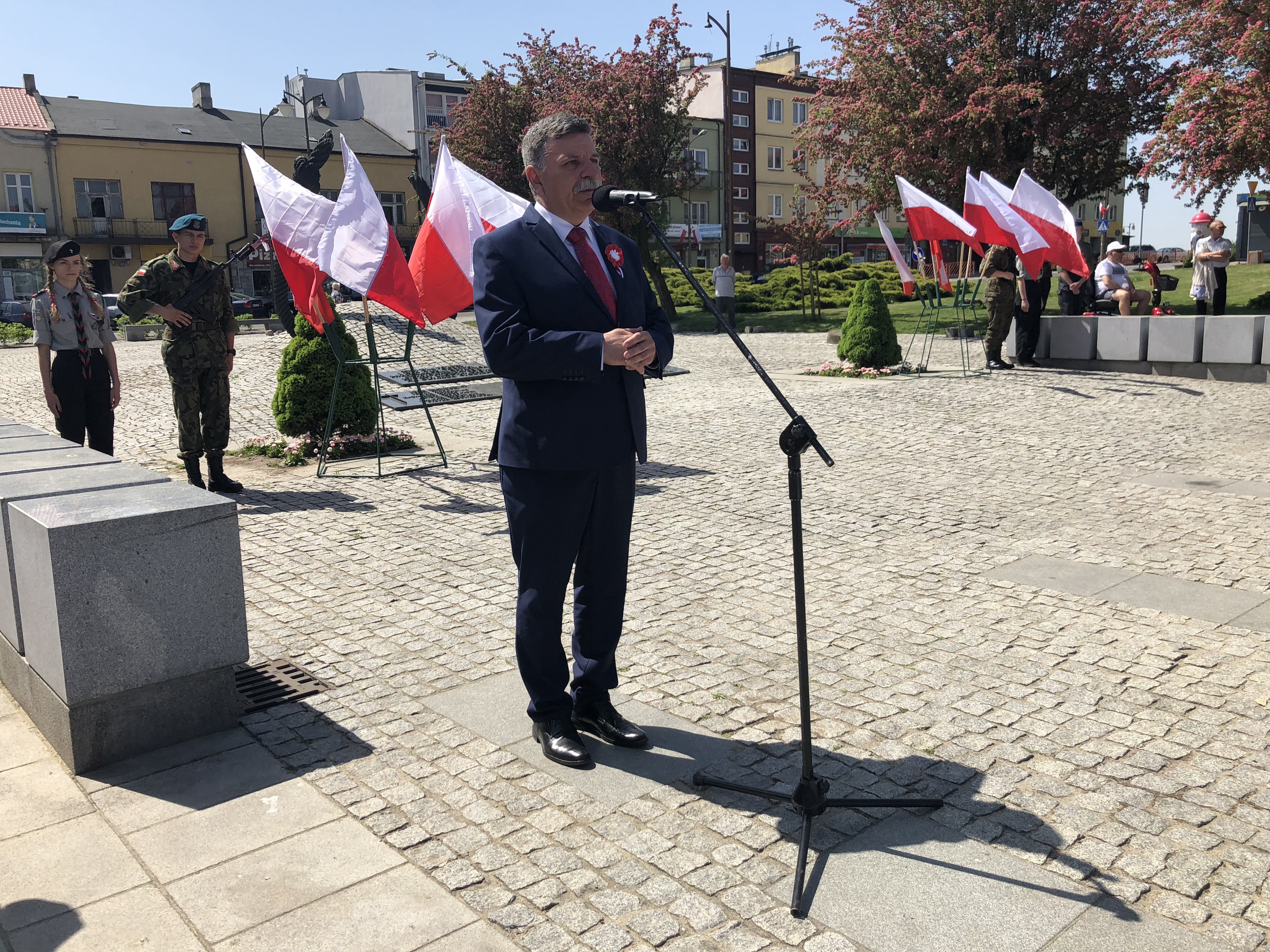 W 227. rocznicę uchwalenia Konstytucji 3 Maja na Rynku w Ostrowcu Świętokrzyskim spotkali się parlamentarzyści, samorządowcy, delegacje związków, stowarzyszeń, organizacji, przedstawiciele zakładów pracy, szkół, a także mieszkańcy miasta.