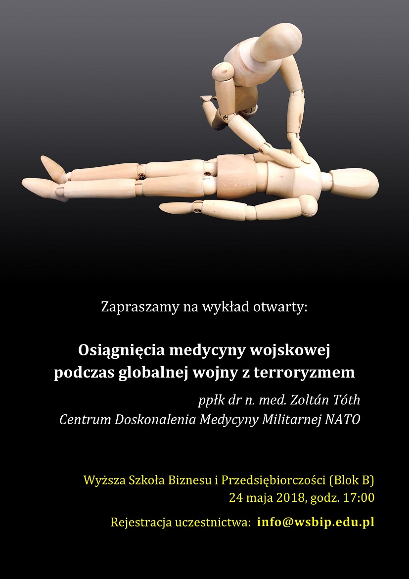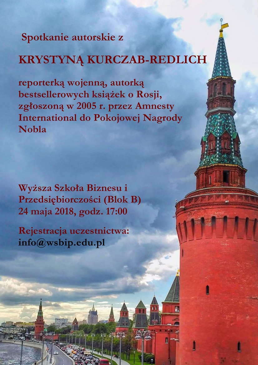 W czwartek 24 maja odbywać się będą równolegle dwa wydarzenia: spotkanie autorskie z Krystyną Kurczab-Redlich, reporterką wojenną, autorką bestsellerowych książek o Rosji, nominowaną przez Amnesty International do Pokojowej Nagrody Nobla oraz wykład otwarty ppłk.dr. n. med. Zoltana Totha z Centrum Doskonalenia Medycyny Militarnej NATO "Osiągnięcia medycyny wojskowej podczas globalnej wojny z terroryzmem"