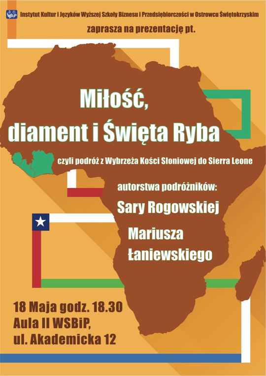 Sara Rogowska i Mariusz Łaniewski przedstawią w Ostrowcu Świętokrzyskim prezentację "Miłość, diament i Święta Ryba, czyli podróż z Wybrzeża Kości Słoniowej do Sierra Leone" .