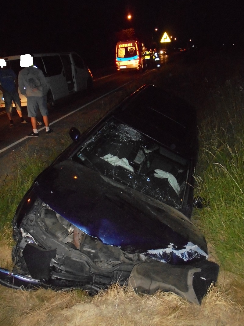Samochód osobowy marki Volkswagen uderzył w przydrożny przepust przeciwległego pasa, którym się poruszał. Kierujący doznał obrażeń głowy, ale udało mu się o własnych siłach opuścić pojazd jeszcze przed przybyciem służb ratunkowych. Poszkodowanego, młodego mężczyznę przewieziono do szpitala na dalsze specjalistyczne badania.