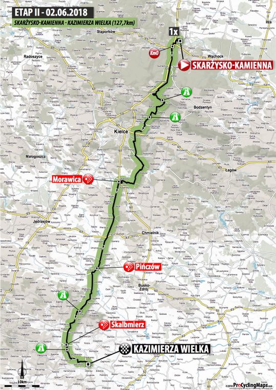 2. etap - 2 czerwca: Skarżysko Kamienna – Kazimierza Wielka, 127,70 km