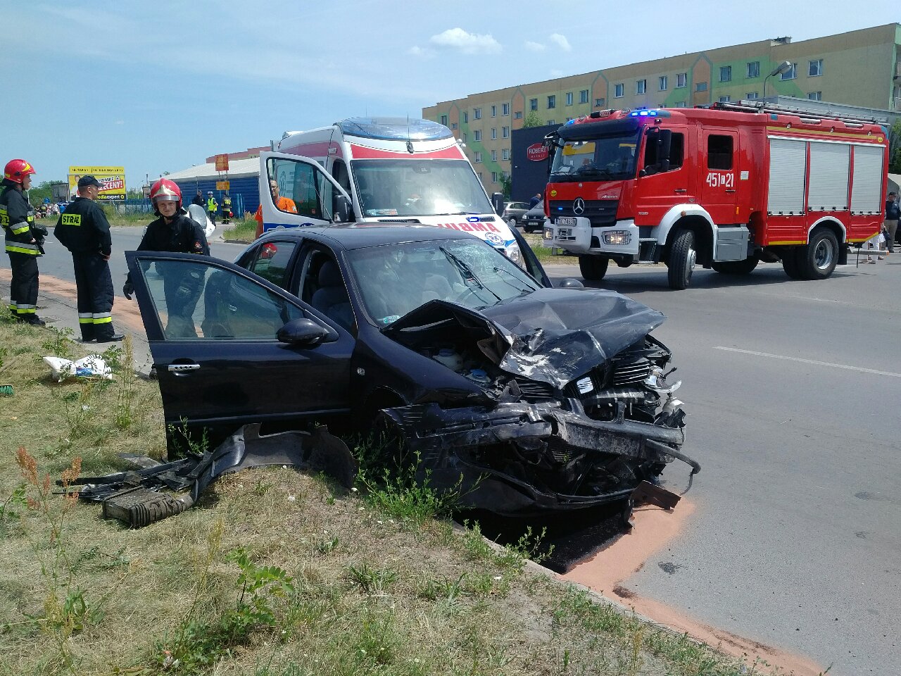 Na ul. 11-go Listopada w Ostrowcu Świętokrzyskim doszło do poważnego wypadku drogowego. W zdarzeniu brało udział dwa samochody osobowe. W aucie marki SEAT Toledo podróżowało 3 osoby, a w SAAB znajdował się tylko kierowca.