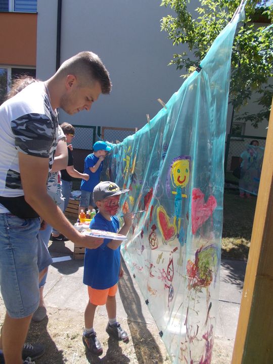 Oprócz zabaw i konkurencji ekologicznych były również zajęcia integracyjne. Dla dzieci przygotowane były następujące stoiska: malowanie twarzy, bańki mydlane, dywaniki edukacyjne, rodzinne malowanie farbami na folii tunelowej, łowienie eko- rybek, kącik plastyczny. Każdy uczestnik znalazł więc coś dla siebie. Przygotowane również było stoisko z posiłkami ekologicznymi.