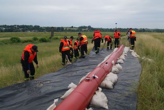 - podwyższania korony wału przy użyciu rękawów przeciwpowodziowych i worków z piaskiem,