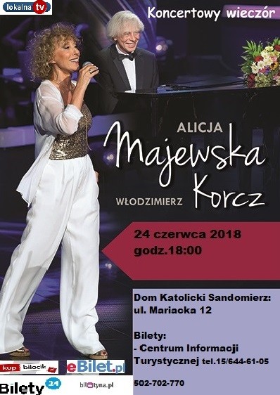 Alicja Majewska to jeden z najpiękniejszych głosów polskiej piosenki. W jej repertuarze obecne są piosenki znakomitych autorów tekstów, głównie Wojciecha Młynarskiego. Stałym współpracownikiem artystki jest kompozytor i pianista Włodzimierz Korcz, który wspólnie z Warsaw Opera Quartet, będzie towarzyszyć artystce na scenie w Sandomierzu.