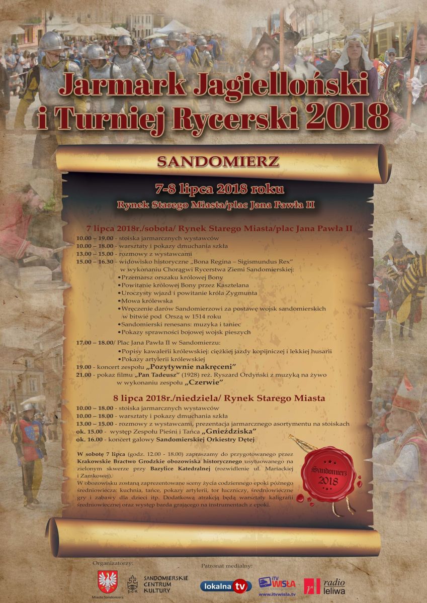 Podczas tegorocznego Jarmarku Jagiellońskiego i Turnieju Rycerskiego w Sandomierzu, jak co roku będą miały miejsce ciekawe inscenizacje historyczne, pokazy walk rycerskich, tańca dawnego, pokazy rzemiosł dawnych, koncerty muzyczne oraz inne atrakcje.