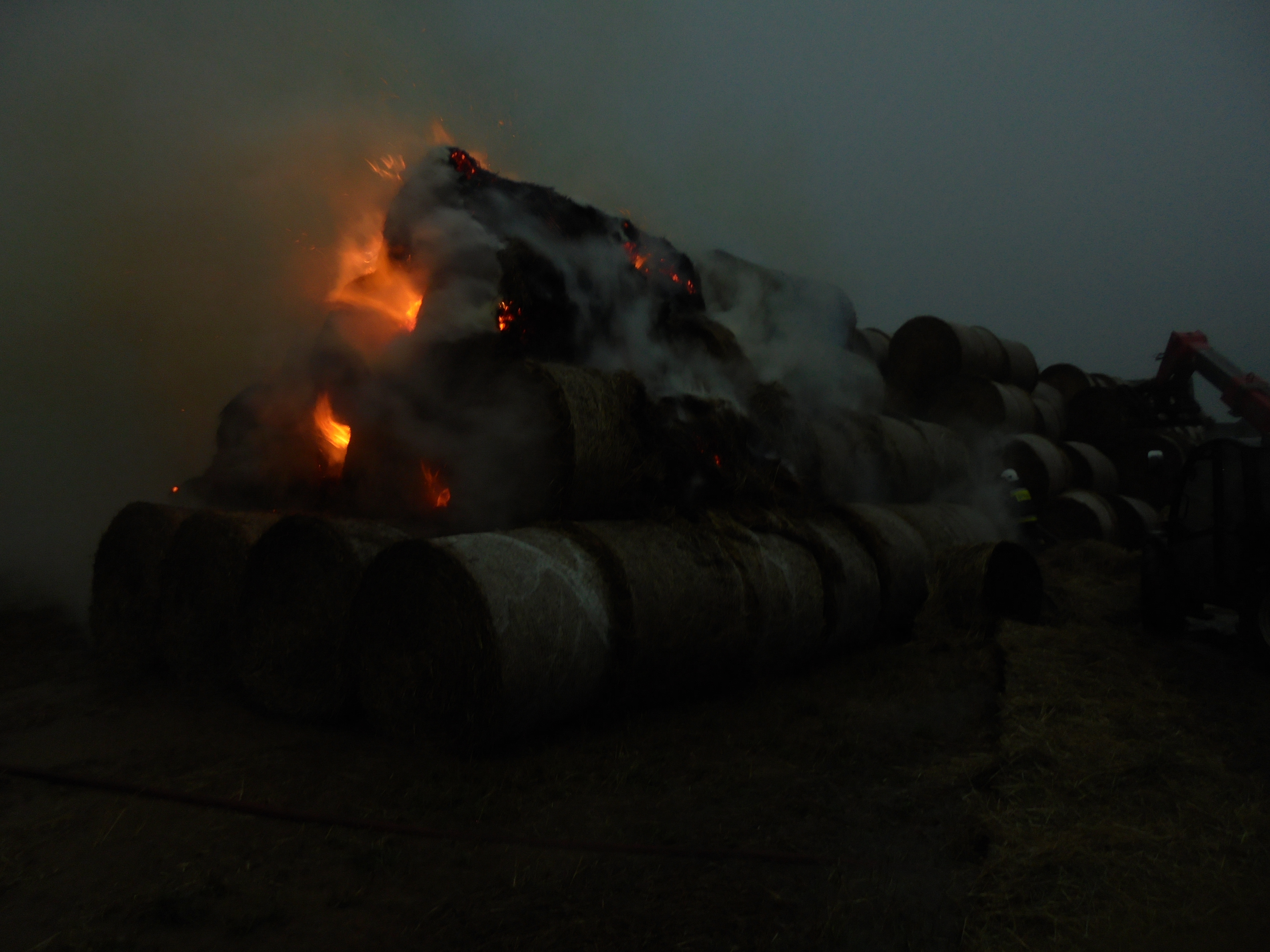 Dzięki ciągłemu laniu wody przez straż pożarną oraz właścicielowi, który koparką teleskopową rozdzielił palące elementy od pozostałych, pożar udało się ugasić po 19 godzinach.