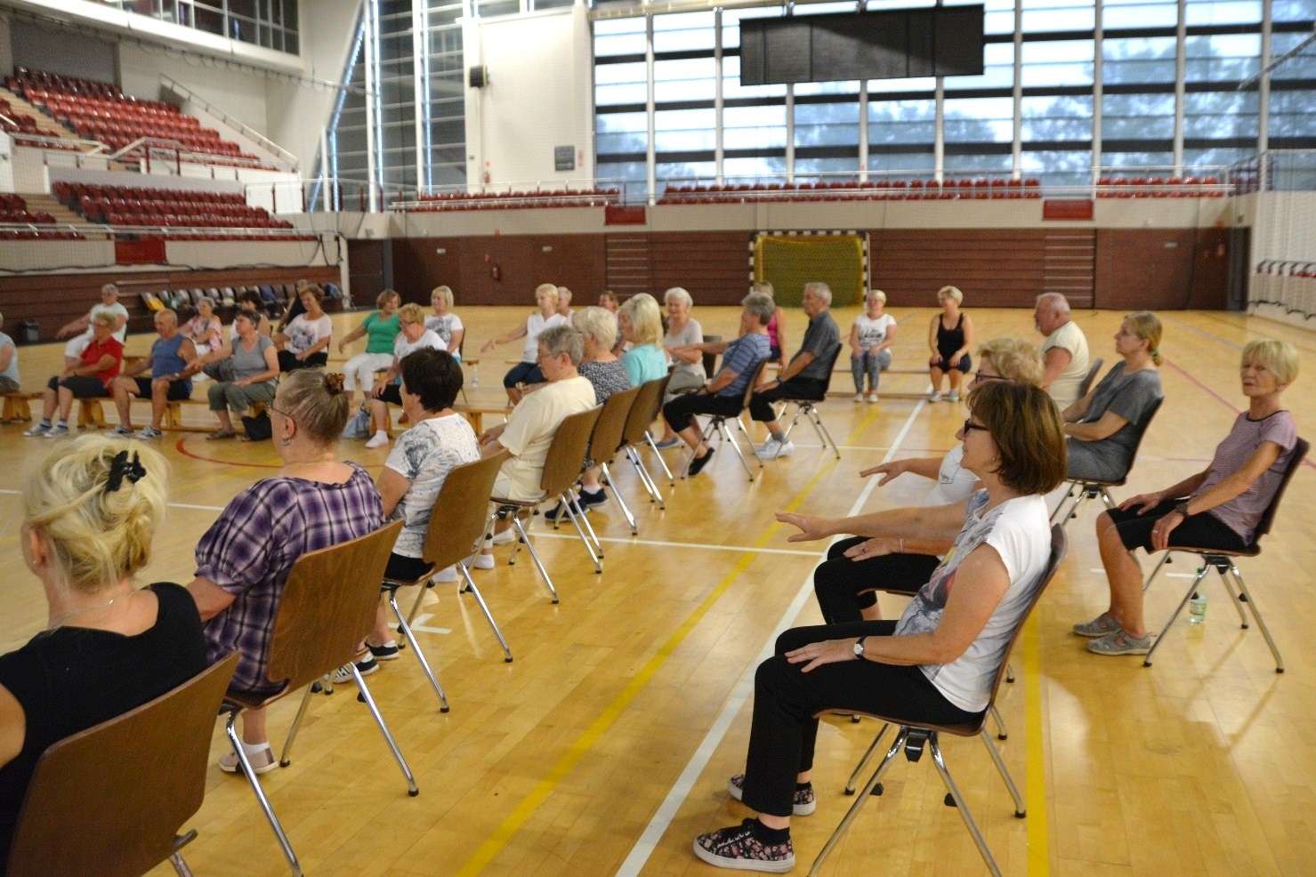 Od środy 5 września seniorzy powrócą do Hali Sportowo – Widowiskowej przy ul. Świętokrzyskiej 11. Zajęcia tradycyjnie będą się odbywać w każdą środę, w godzinach 16-18. Tematem spotkań będzie „Gimnastyka przy muzyce”, czyli wzmacniające i rozciągające ćwiczenia z elementami tanecznymi.