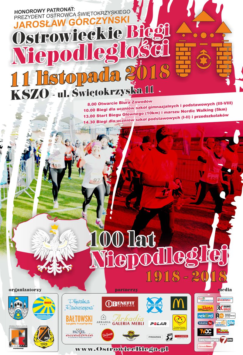 Nagrody rzeczowe w klasyfikacji „Najszybsi mieszkańcy Ostrowca Świętokrzyskiego” ufundowane zostały przez Partnerów Ostrowieckich Biegów Niepodległości 2018.