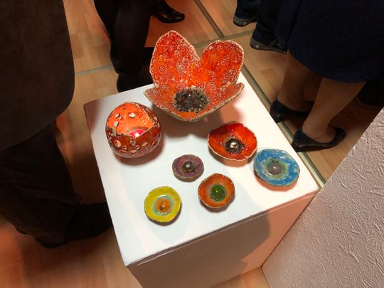 Na wystawie zaprezentowano między innymi prace członków Klubu Seniora „Młodzi Duchem" oraz uczestników Warsztatów Terapii Zajęciowej.