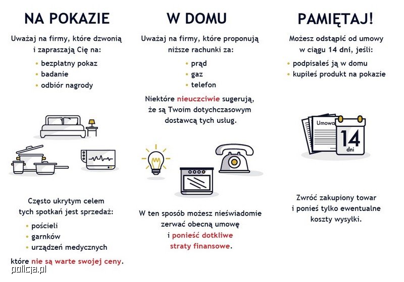 W 2017 roku na terenie Polski popełniono ponad 40 tysięcy przestępstw na szkodę osób starszych (65+). Były to przede wszystkim: kradzieże cudzej rzeczy, kradzieże z włamaniem oraz oszustwa. Wśród metod działania sprawców oszustw jednym z najbardziej znanych jest oszustwo na tzw. „wnuczka” lub „policjanta”. Jednak w ostatnim czasie coraz częściej mówi się także o nadużyciach przy zawieraniu różnego rodzaju umów. Mogą to być umowy podpisywane na pokazach dedykowanych głównie seniorom, ale również umowy na dostarczanie mediów czy usług telefonicznych, które bywają zawierane w mieszkaniach. Niestety okazuje się, że oferujący takie usługi są oszustami. Wykorzystują starsze osoby doprowadzając je do podpisania niekorzystnych umów. Takie działania mogą wypełniać znamiona przestępstwa.