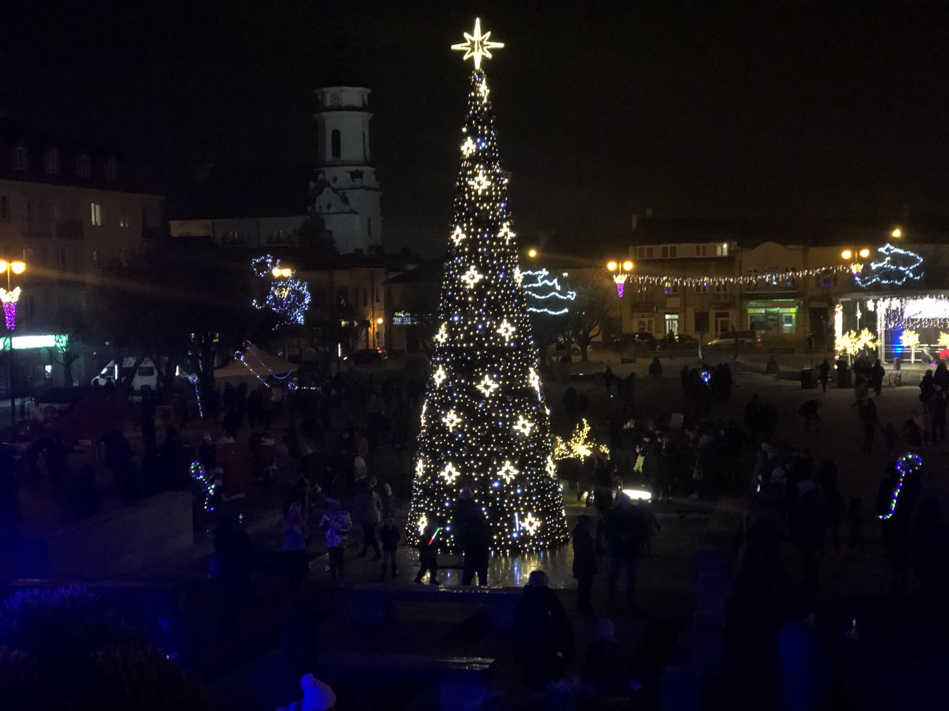 Na ostrowieckim Rynku pojawił się Święty Mikołaj z upominkami i śnieżynki. O godzinie 18.00 prezydent Jarosław Górczyńskiemu rozświetlił choinkę. Ze sceny popłynęły życzenia, również od starosty Marzeny Dębniak. Zabawę zakończył pokaz sztucznych ogni.