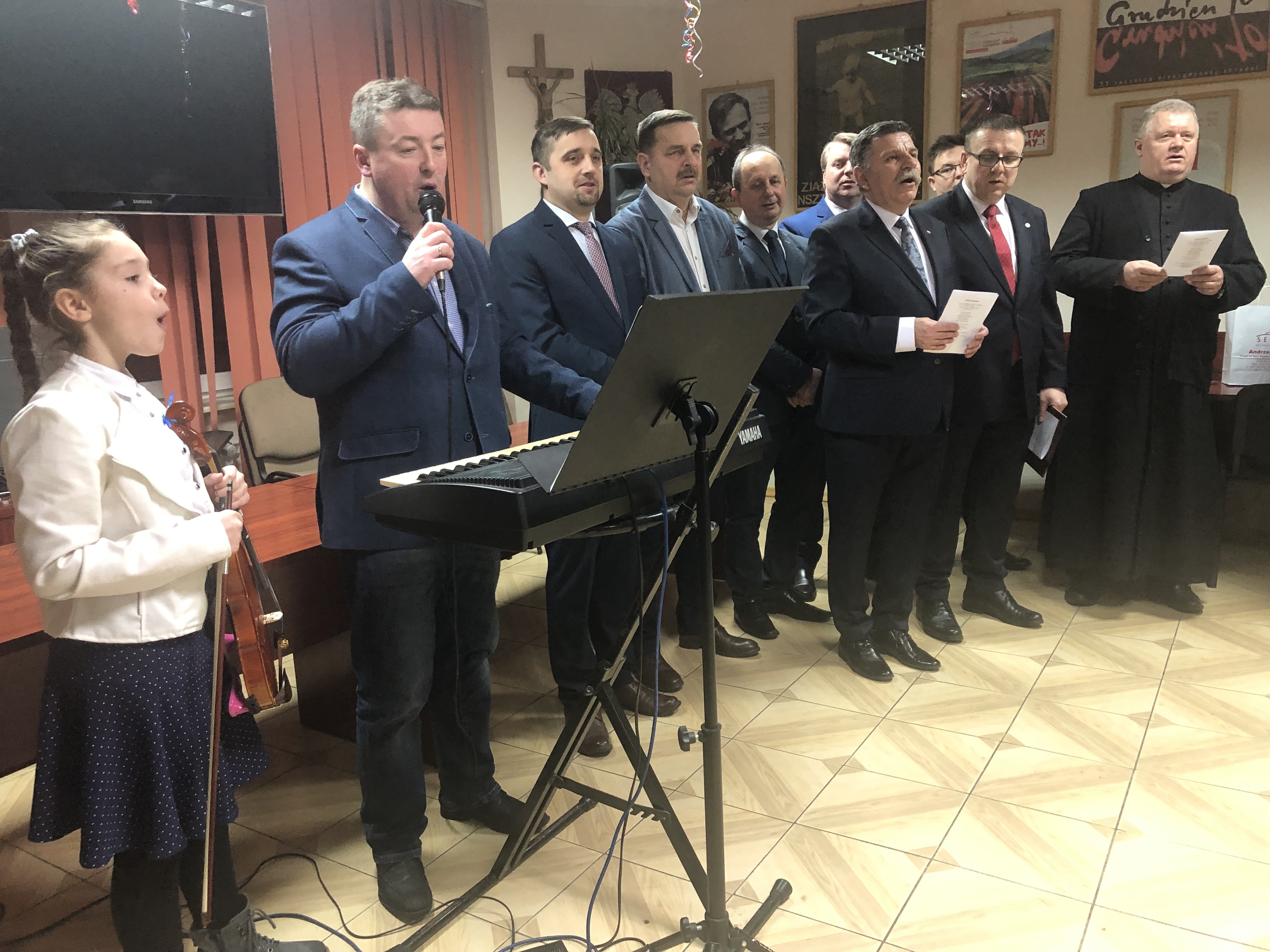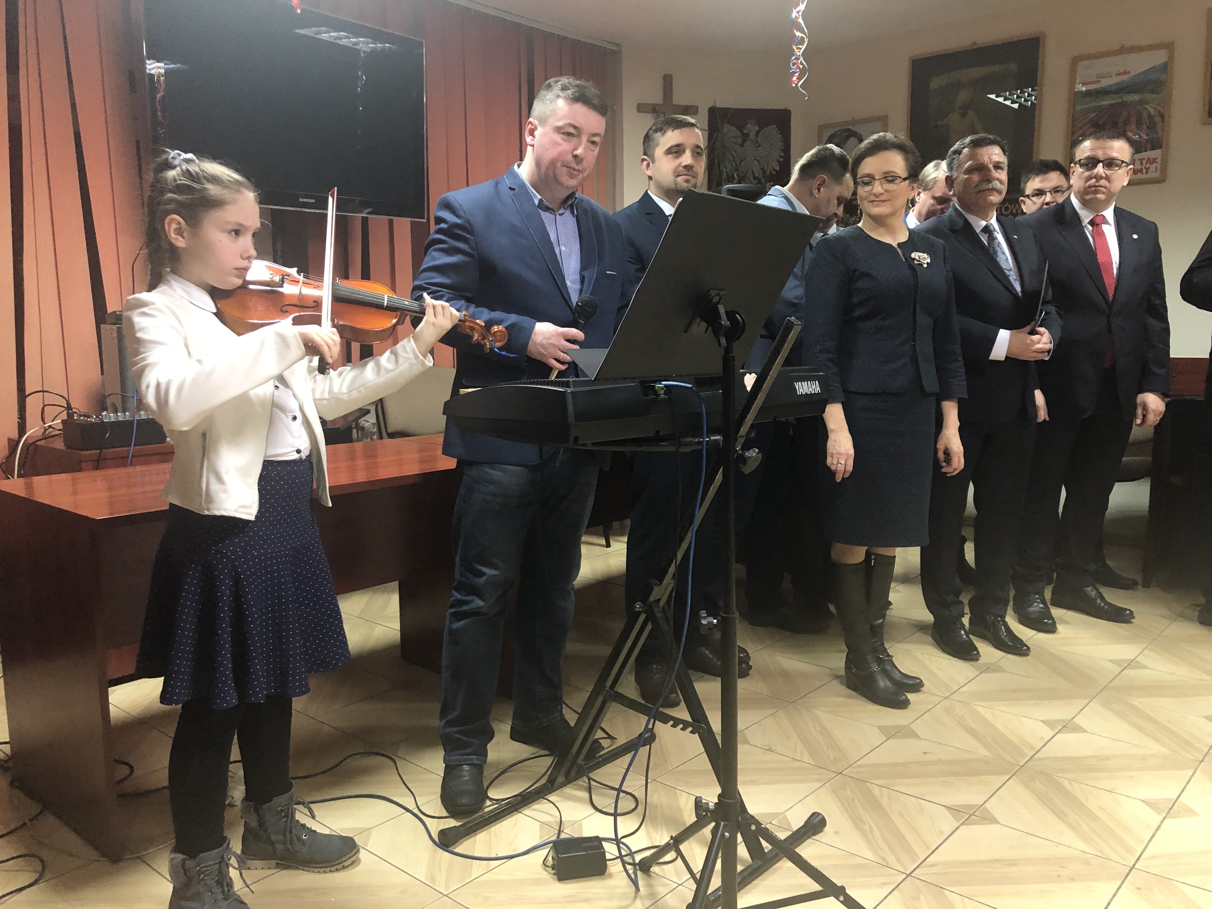 Uczestników noworocznego spotkania, które odbyło się 11 stycznia u posła Andrzeja Kryja w świąteczno-noworoczny nastrój wprowadził Andrzej Budziński z córką, wykonując najpiękniejsze polskie kolędy.
