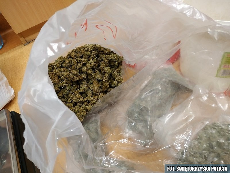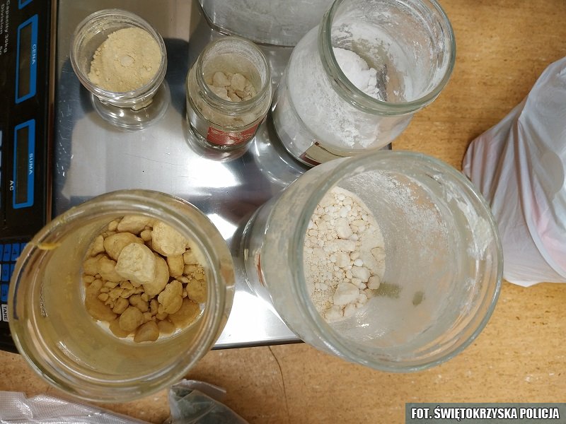 Policjanci z Wydziału Kryminalnego Komendy Powiatowej Policji w Ostrowcu Świętokrzyskim od pewnego czasu podejrzewali, że 48-letni mieszkaniec Ostrowca może posiadać środki odurzające. 10 maja 2019 roku, w godzinach popołudniowych, w trakcie patrolu jednej z ulic funkcjonariusze spotkali tego mężczyznę, a ten na ich widok zaczął się zachowywać nienaturalnie i nerwowo. Przeprowadzono przeszukanie mężczyzny i jego samochodu. W trakcie czynności znaleziono przy przeszukiwanym kilka zawiniątek z zawartością suszu roślinnego i białego proszku oraz prawie 3 tysiące złotych w gotówce. W samochodzie natomiast policjanci znaleźli dwa naboje do karabinka sportowego, etui z wytrychami oraz cztery telefony komórkowe.