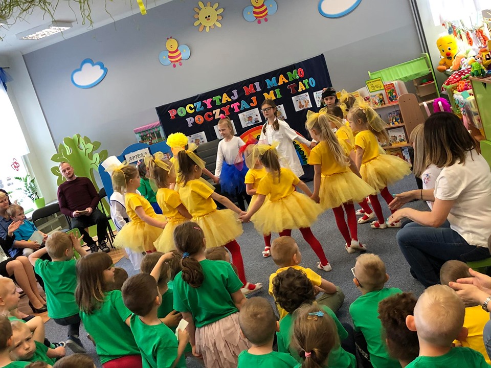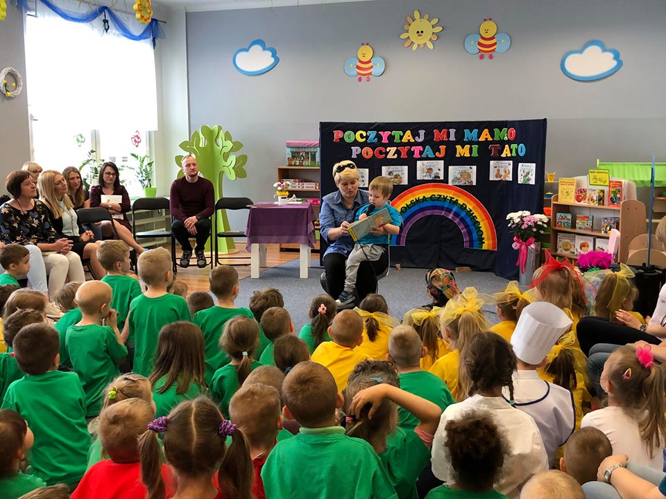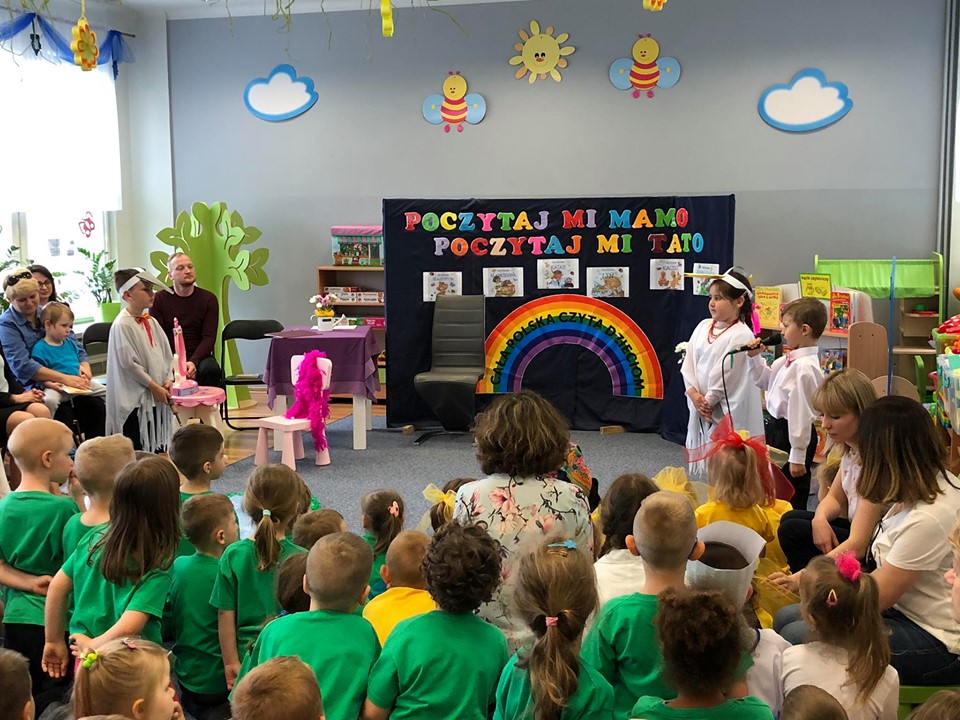 Tym razem role się odwróciły, to rodzice występowali przed swoimi dziećmi. Z książką w ręku i lekką tremą mogli poczuć się jak swoje pociechy. Nie bez przyczyny były czytane pozycje Jana Brzechwy - autora wielu znanych wierszy i bajek dla dzieci. To właśnie on jest patronem placówki przy Osiedlu Ogrody 20.