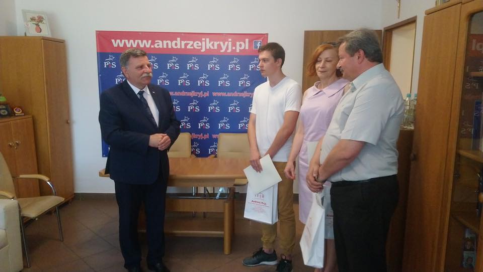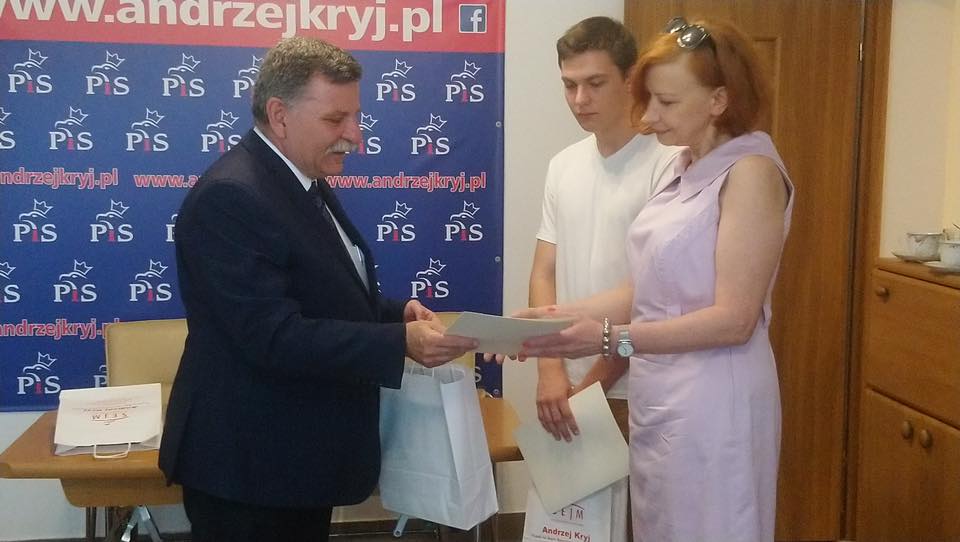 Poseł Andrzej Kryj podkreśla, że młodych i zdolnych trzeba doceniać i wyróżniać. Każde podsumowanie roku szkolnego daje mu możliwość wytypowania najlepszych i docenienia ich ciężkiej pracy i trudu włożonego w naukę.