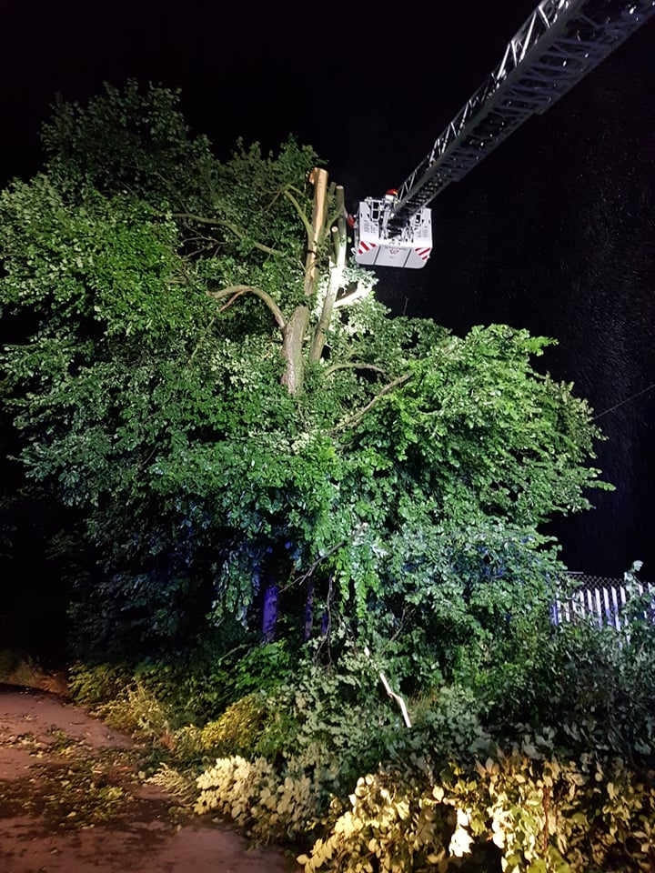 W wyniku silnych wiatrów i ulewnych deszczy mieliśmy aż 46 zdarzeń. 41 zdarzeń i 5 dziś z rana. Na szczęście nikt nie ucierpiał w tych zdarzeniach. 19 z tych zdarzeń, to zdarzenia, w których uszkodzone były budynki w tym 17 mieszkalnych. Jedno takie duże było zdarzenie w Bodzechowie, gdzie musieliśmy ewakuować 17 mieszkańców z budynku wielorodzinnego, ponieważ zerwany został cały dach. Reszta zdarzeń to były powalone drzewa, głównie Ostrowiec Świętokrzyski, miejscowości Bodzechów, Jędrzejów oraz Goździelin.
