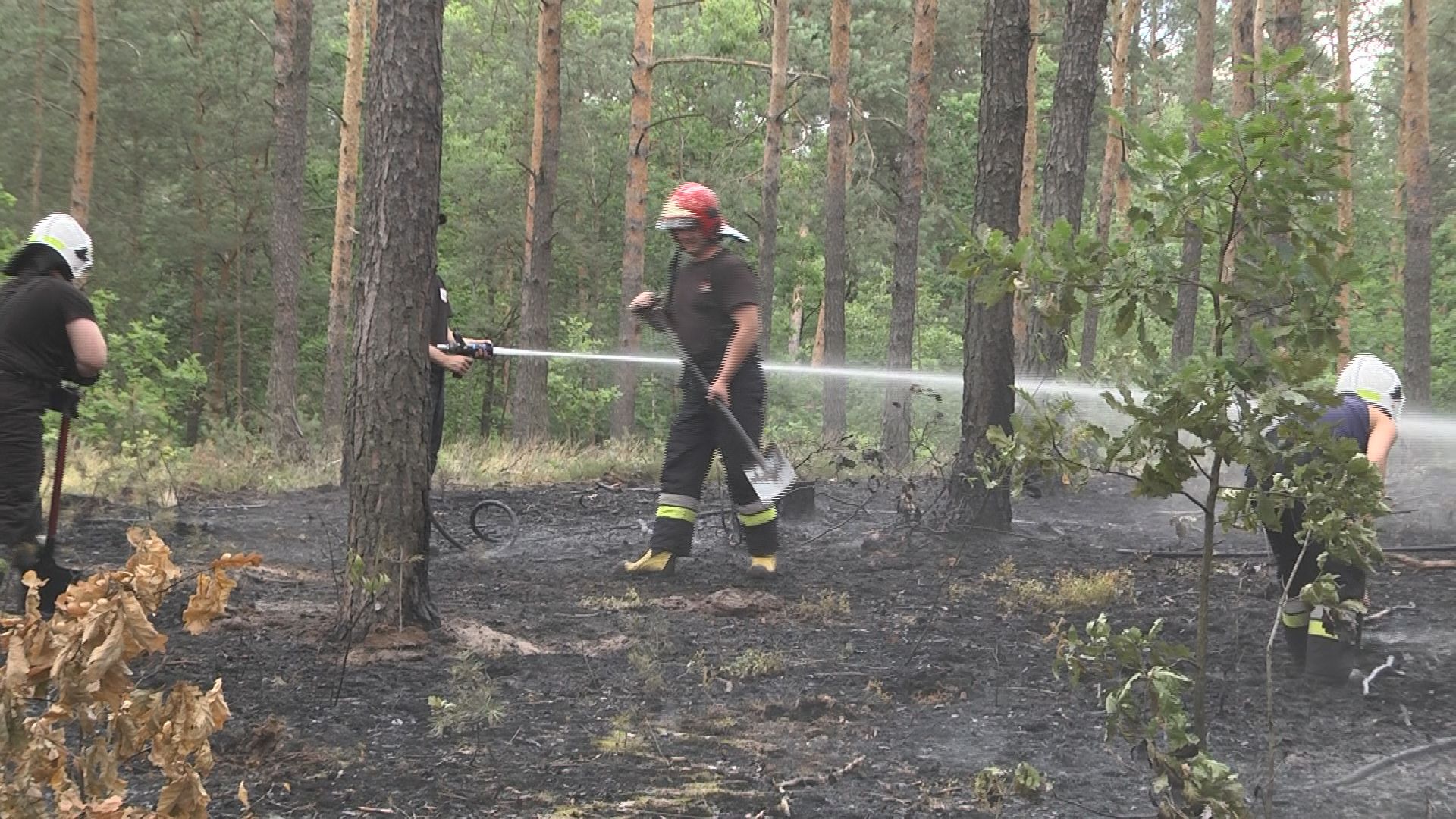 Na miejsce natychmiast zadysponowano 3 zastępy straży pożarnej. W akcji udział wzięło 12 ratowników, którzy z ogniem walczyli ok. 2 godziny. Spaliło się blisko 30 arów lasu.