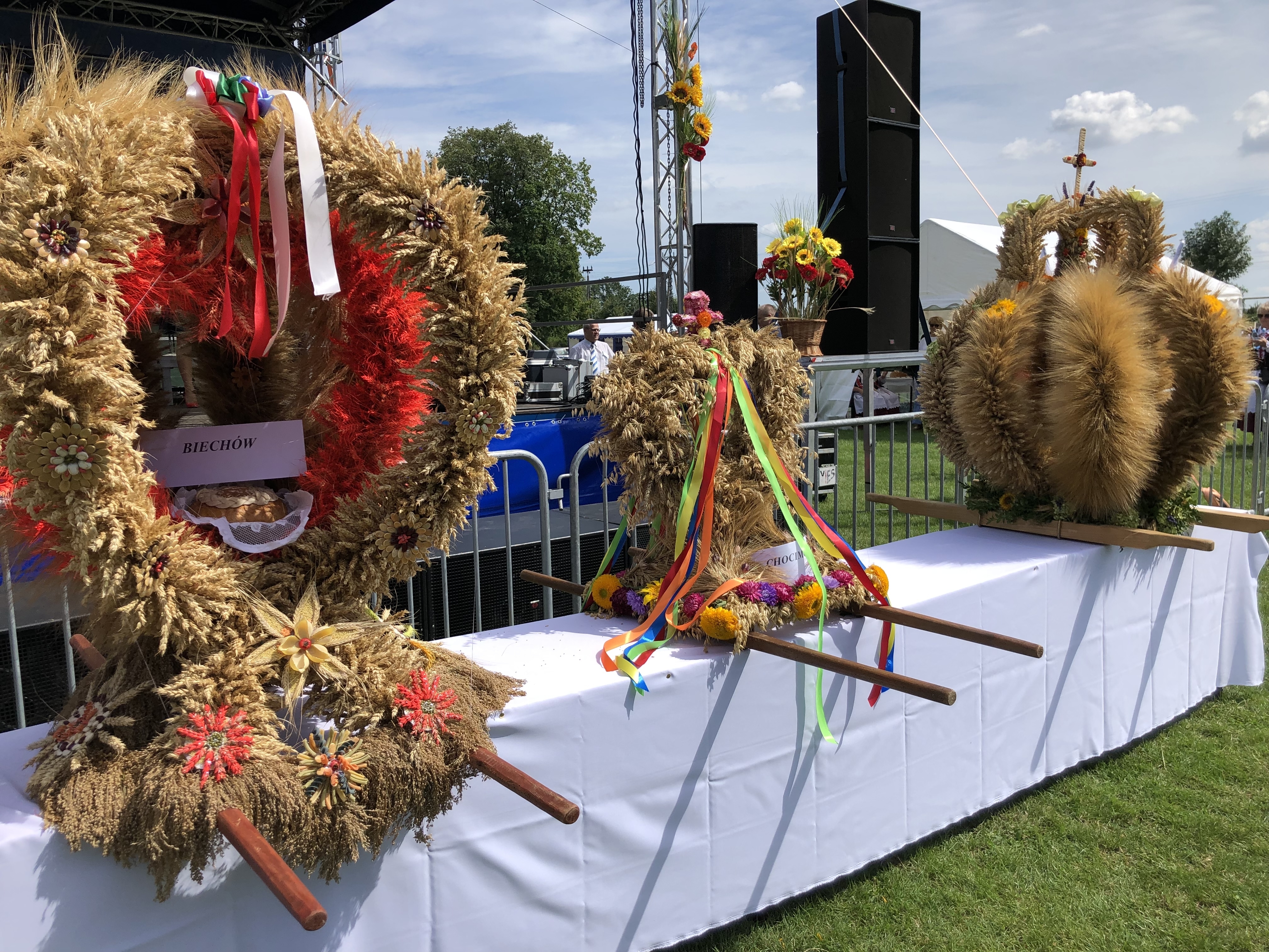 Rolnicy odgrywają ważna rolę dla gospodarki każdego z regionów, a w rezultacie kraju, to oni są producentami wielu produktów, które w później trafiają na stoły. Staropolskim obyczajem w niedzielę 18 sierpnia spotkali się rolnicy z Gminy Kunów, aby pieśniami znanych od dziada pradziada ośpiewać wieńce wykonane z zebranych plonów. Ten rok dla rolników był kapryśny przez warunki atmosferyczne, które wyrządziły szkody. W Gminie Kunów najwięcej szkód wyrządziły susze, upalne dni doprowadziły do zniszczenia m.in. krzewów owocowych. Niskie ceny skupy, a wysokie ceny produkcji powodują, że uprawa niektórych warzyw czy owoców staje się mało opłacalne. Pomocą ma być nowy rządowy program, który pozwala rolnikom na sprzedaż bezpośrednią. W rolnictwie bardzo pomocne są rządowe programy, dzięki, którym gospodarstwa rolne mogą modernizować się m.in. przez zakup nowoczesnych maszyn. Rolnictwem człowiek zajmował się od wieków. Od tamtego czasu z pokolenia na pokolenie przekazywane są folklorystyczne śpiewy, tańce, obrzędy, a teraz je kultywują koła gospodyń wiejskich. To właśnie te panie dbają o piękną oprawę dożynek. Swoimi śpiewami umilają czas, a ich przysmaki są towarami, które znikają w niebywałym tempie. Przepis na kunowski "burocosz" jest jednym z w wielu lokalnych przysmaków przygotowywany przez gospodynie. W Kołach Gospodyń Wiejskich bardzo często są całe rodziny, dla których tradycja to wartość nadrzędna. Dożynki Gminne w Kunowie, odbyły się z licznymi atrakcjami dla każdego od dzieci przez młodzież do dorosłych i tych najstarszych mieszkańców miasta i gminy.