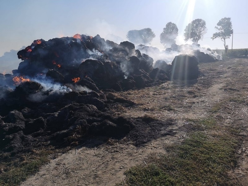 Pożar szybko się rozprzestrzeniał ze względu na dużą ilość sprasowanego materiału. W wyniku działań gaśniczych oraz użycia ciężkiego sprzętu do oddzielenia palącej się słomy od pozostałej udało się uratować około 150 balotów. W wyniku tego zdarzenia na szczęście nikt nie ucierpiał, w pobliżu nie ma zabudowań. Dogaszanie pożaru trwa nadal, w kulminacyjnym momencie akcji gaśniczej brało w niej udział 35 ratowników z 10 zastępów straży pożarnej.