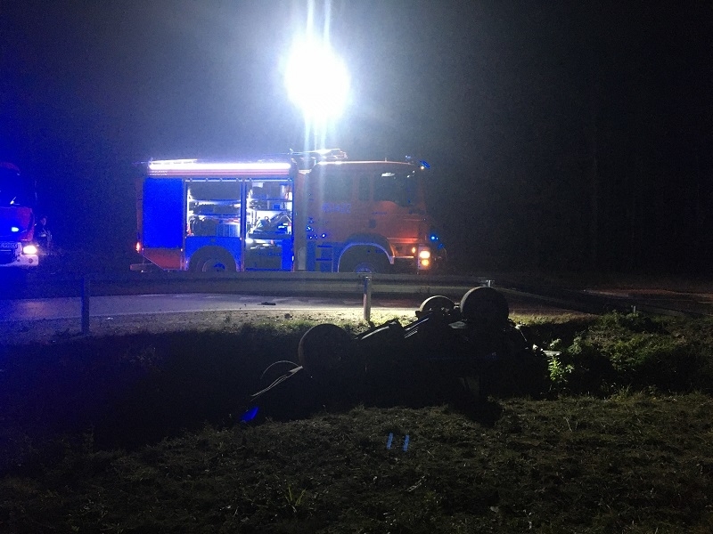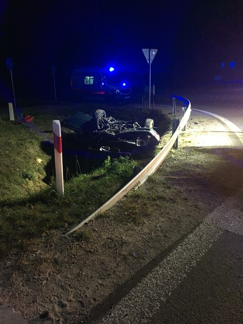 Do zdarzenia natychmiast zadysponowano 4 samochody ratowniczo-gaśnicze 15 strażaków. Po przybyciu zastępów na teren akcji, stwierdzono że samochód osobowy marki VW Vento dachował i znajduje się w przydrożnym rowie nie blokując drogi. W pojeździe znajdował się nieprzytomny kierowca. Działania strażaków polegały w pierwszej kolejności na zabezpieczeniu miejsca zdarzenia oraz wykonaniu stabilizacji pojazdu. Następnie przy użyciu narzędzi hydraulicznych wykonano dostęp do poszkodowanego poprzez rozgięcie tylnych drzwi w pojeździe. Kierowcę ewakuowano z samochodu przy użyciu deski ratowniczej po czym przekazano go Zespołowi Ratownictwa Medycznego. Przybyły na miejsce lekarz pogotowia ratunkowego stwierdził zgon 24 letniego mężczyzny. Na tym działania zakończono. Akcja trwała ponad godzinę.