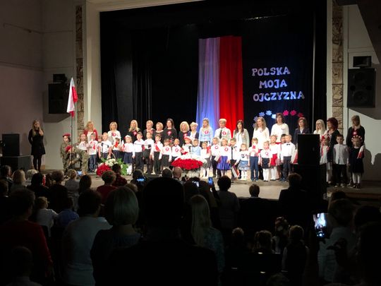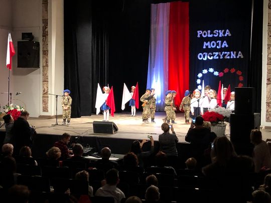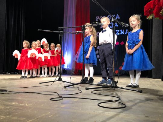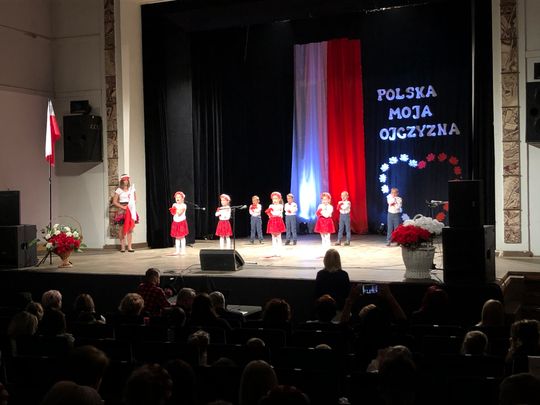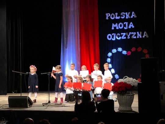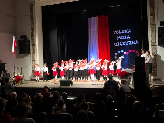 Uroczystość rozpoczęto odśpiewaniem hymn narodowego. Dzieci w barwnych strojach, z pełną powagą przedstawiłymontaż słowno – muzyczny pełen patriotycznych wierszy, piosenek i układów tanecznych. Kilkuletnie dzieci zatańczyły poloneza, mazura, kujawiaka, oraz nowoczesne układy choreograficzne z użyciem biało – czerwonych kwiatów i wstążek. Słowa wierszy „Katechizm polskiego dziecka”, „Twój Dom”, „Kim też ja będę?”, pieśni i piosenki patriotyczne: „Szare szeregi”, „Pałacyk Michla” „Od morza do Tatr”, „Rodzinny Kraj”, „Co to jest Niepodległość?”, „Mały Patriota” wzruszyły publiczność. Za swoje występy mali artyści otrzymali gromkie brawa od publiczności. Wydarzenie zakończyło wspólne zaśpiewanie piosenki patriotycznej „Jesteśmy Polką i Polakiem”.