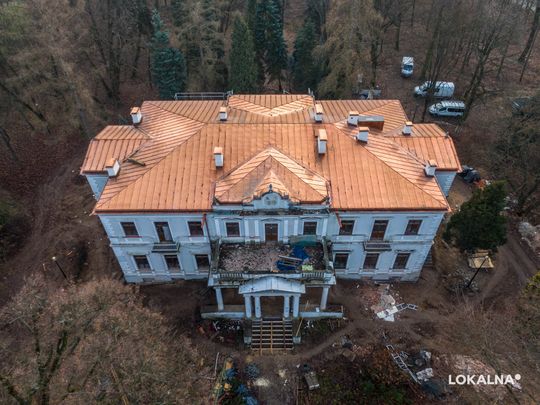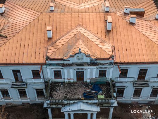 "W pałacu wykonaliśmy wszystkie prace rozbiórkowe, praktycznie w całości pokryliśmy już dach blachą miedzianą, wykonujemy wzmocnienia stropów, zostały wykonane izolacje zewnętrzne pionowe i poziome, tynkujemy piwnice i rozprowadzamy instalacje elektryczne i hydrauliczne. "