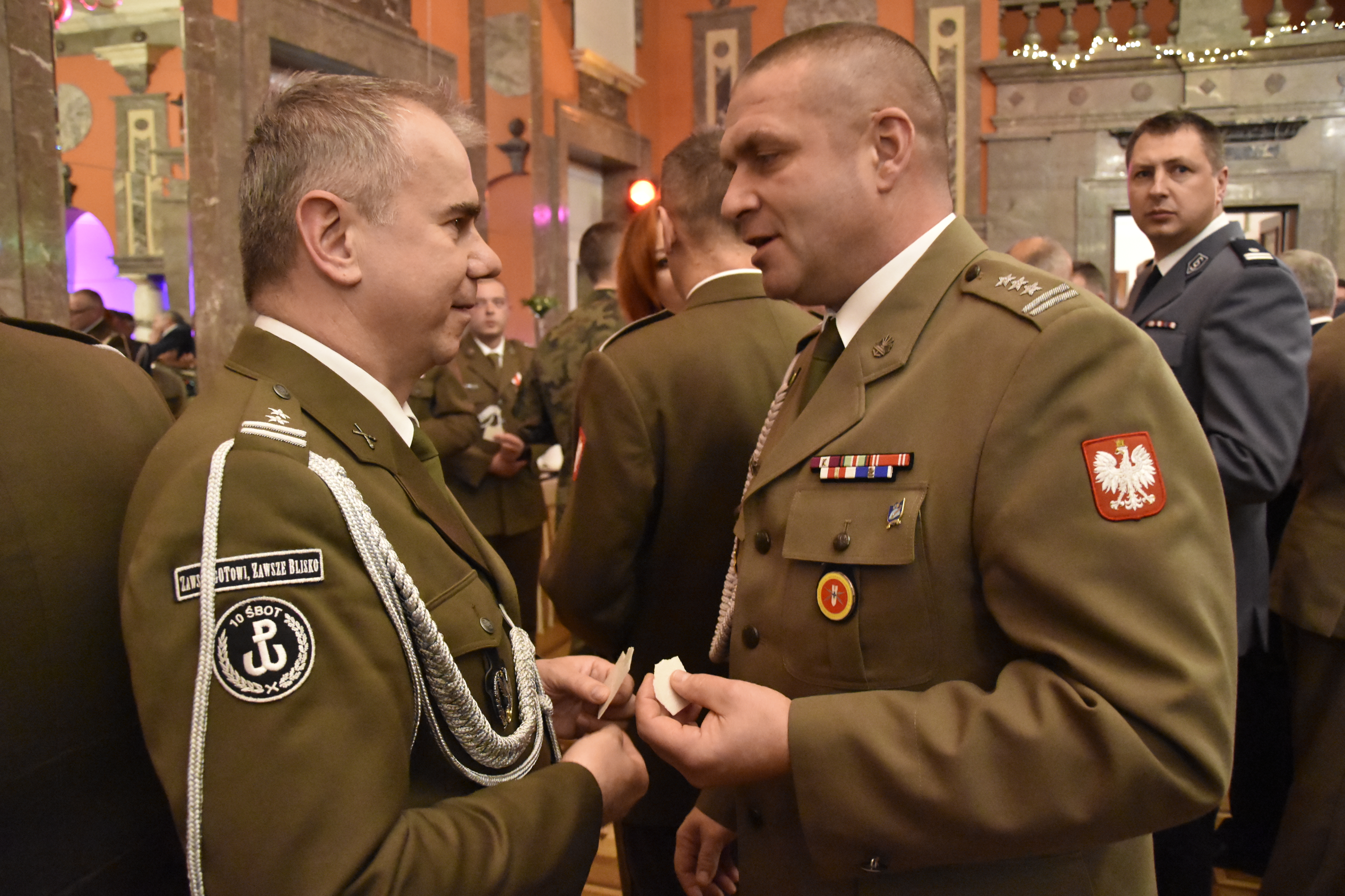 Zaproszeni goście wysłuchali koncertu w wykonaniu Chóru Parafialnego Kościoła Garnizonowego w Kielcach pod kierownictwem dyrygent Edyty Bobryk, który ubogacił tę radosną uroczystość. Przy dźwiękach kolęd i pastorałek wszyscy przybyli dzielili się opłatkiem i składali sobie świąteczne życzenia.