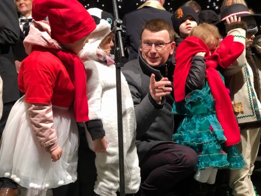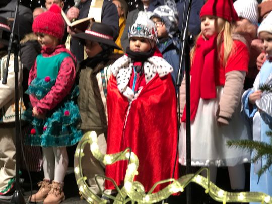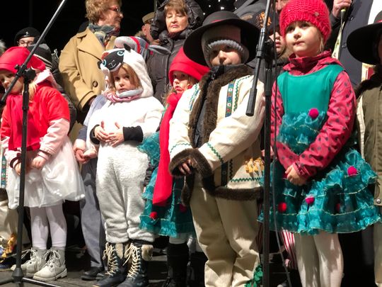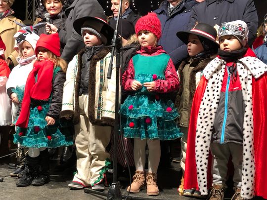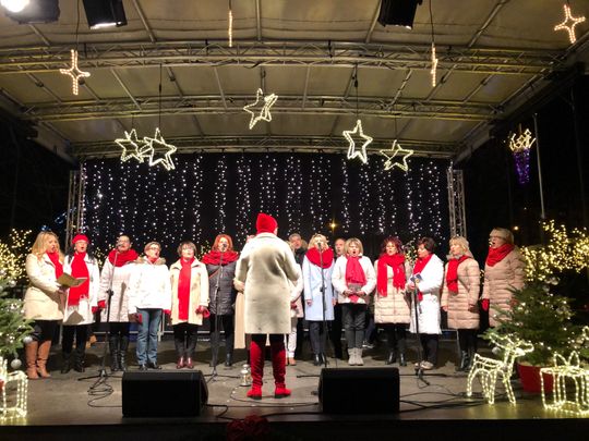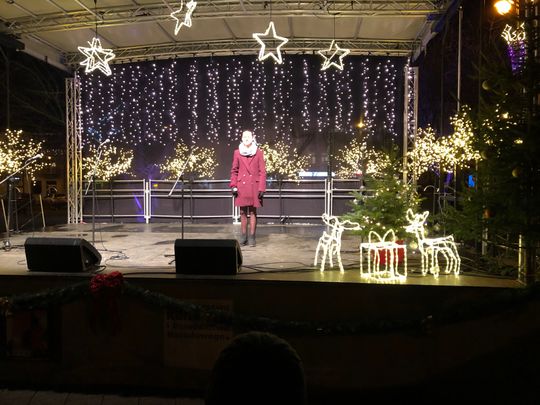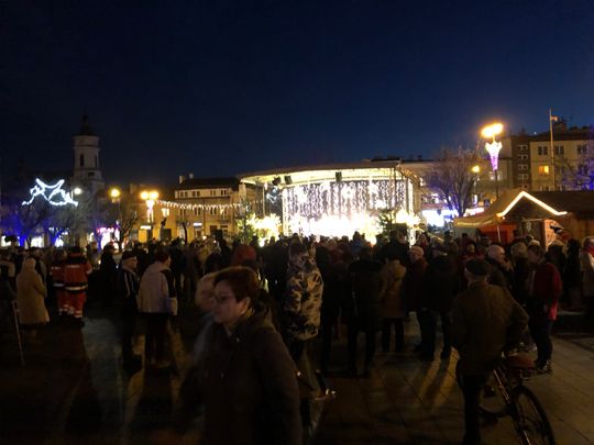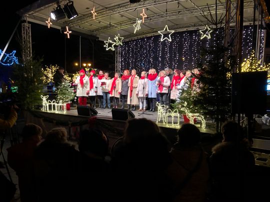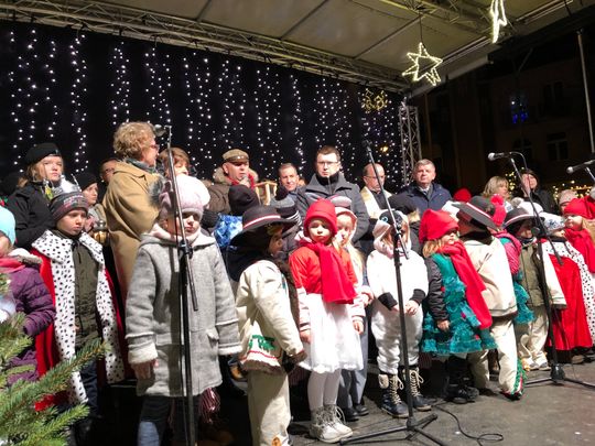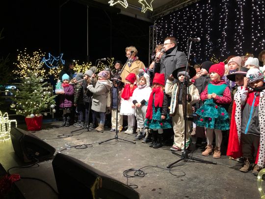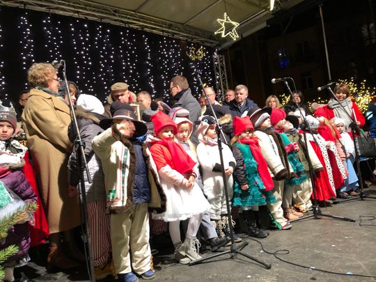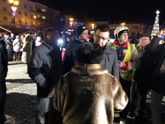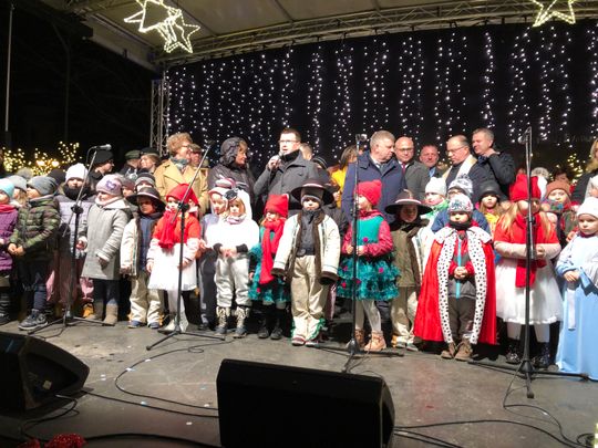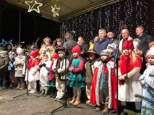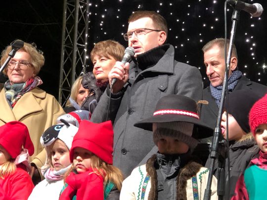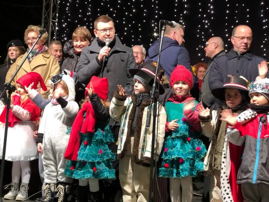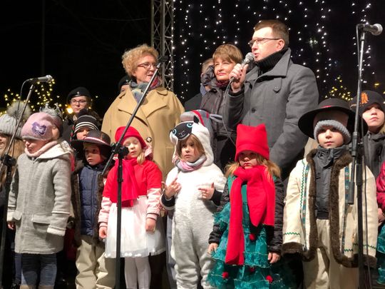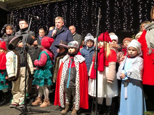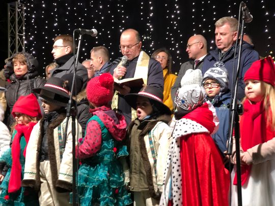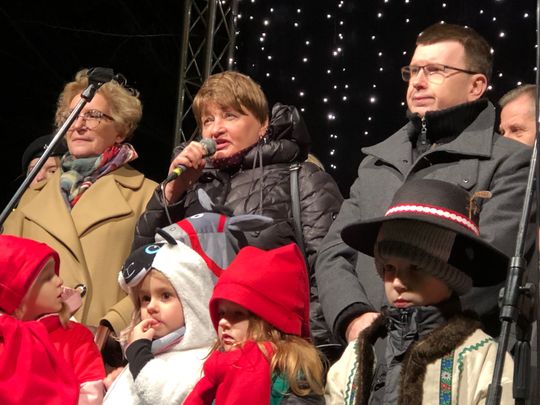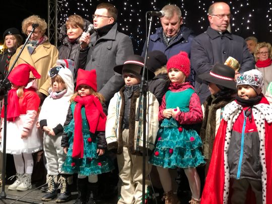 Przy rozświetlonej choince i iluminacjach świątecznych ze sceny życzenia mieszkańcom Ostrowca i powiatu złożyli: prezydent miasta Jarosław Górczyński, starosta ostrowiecki Marzena Dębniak, senator Jarosław Rusiecki, przewodnicząca Rady Miasta Irena Renduda-Dudek, błogosławieństwa na Święta i cały 2020 rok udzielił ksiądz prałat Jan Sarwa, proboszcz parafii Świętego Michała Archanioła.