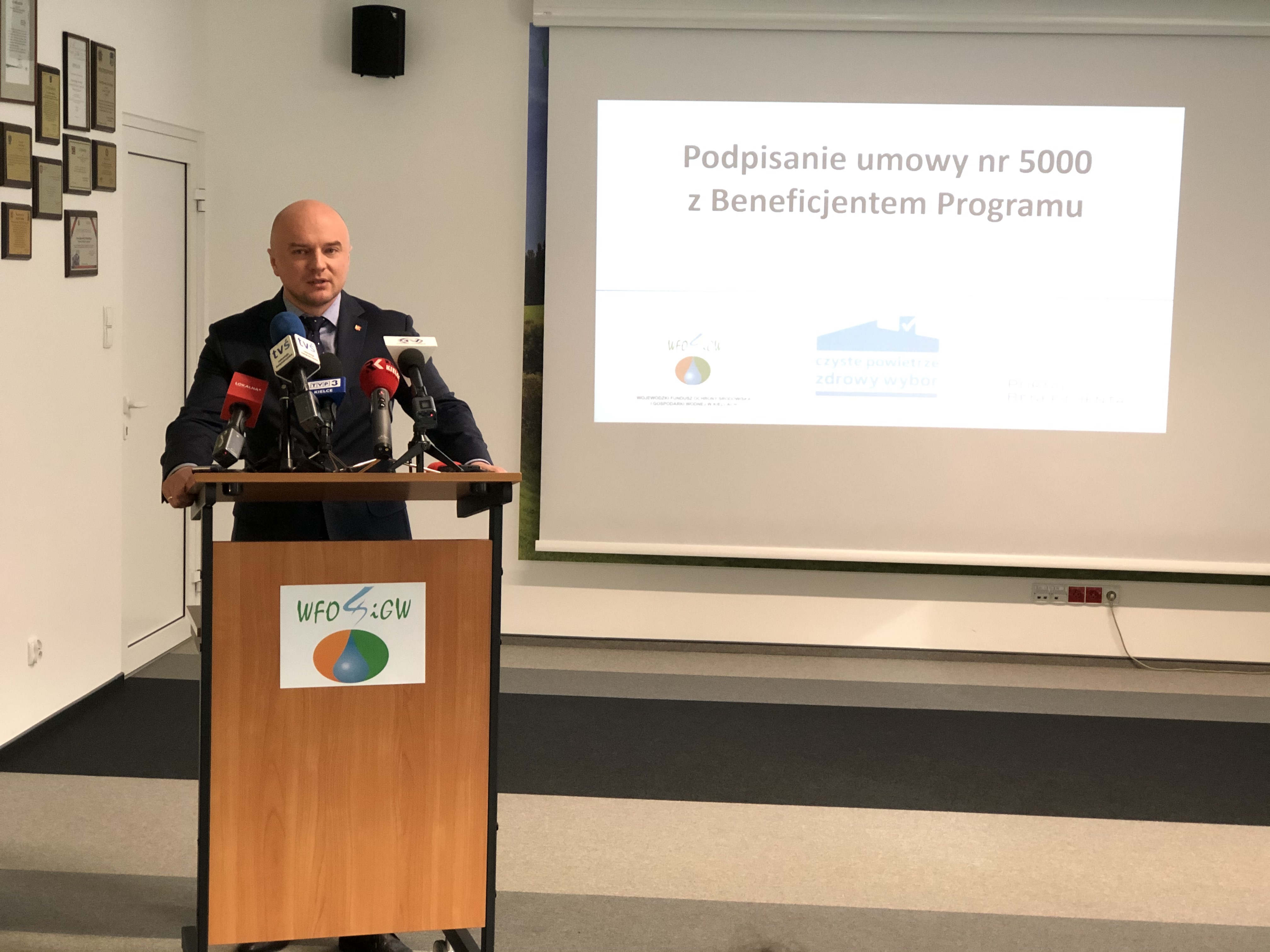 17 lutego w siedzibie Funduszu w obecności świętokrzyskich parlamentarzystów: posłanki Agaty Wojtyszek, senatora Krzysztofa Słonia a także wicewojewody Rafała Nowaka podpisano 5000 umowę z beneficjentem programu "Czyste Powietrze".