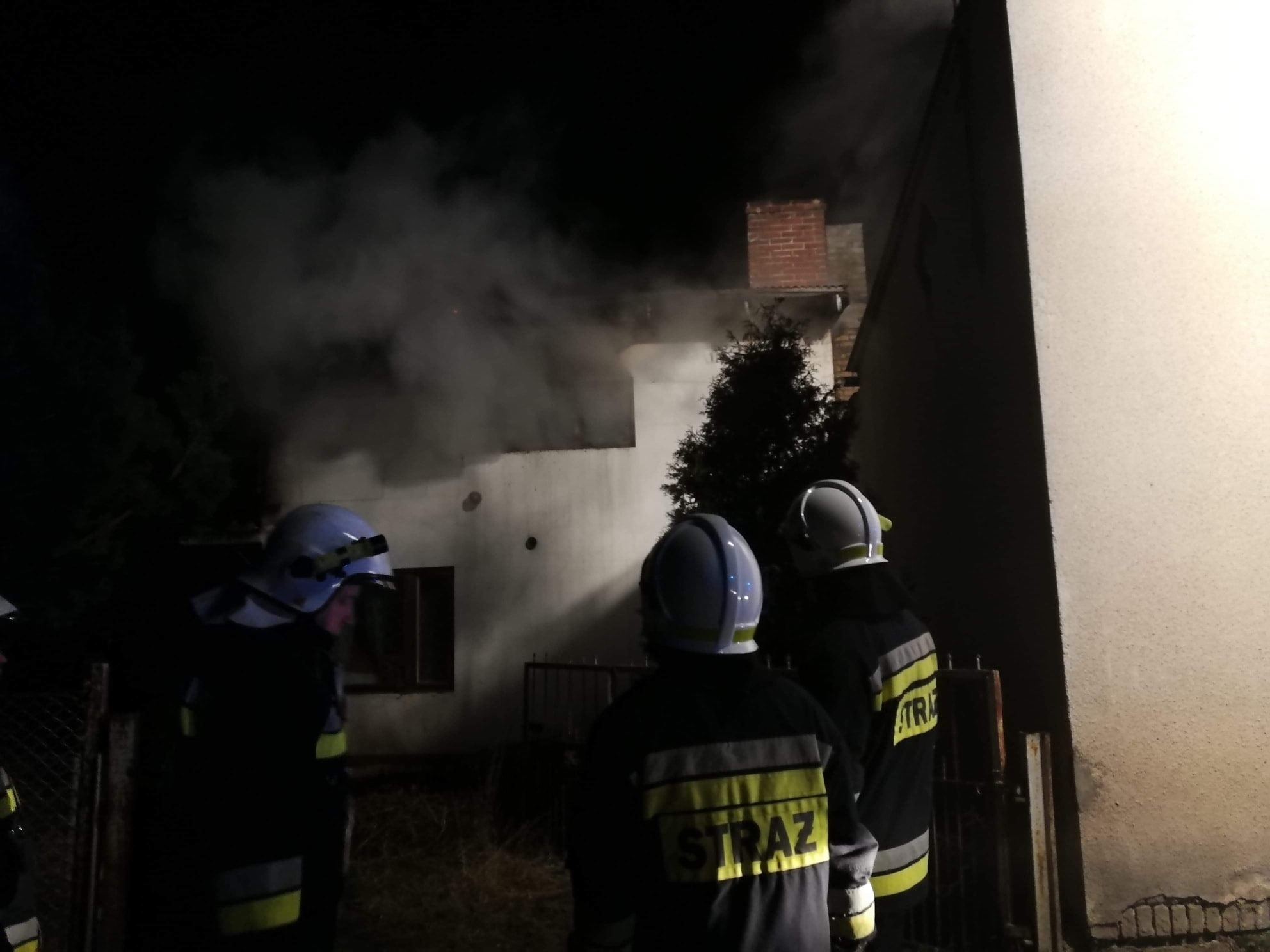 Następnie prowadzono działania rozbiórkowe nadpalonych elementów konstrukcji z jednoczesnym ich przelewaniem wodą. Pomieszczenia sprawdzono kamera termowizyjną. Dalsze działania polegały na przelewaniu pogorzeliska do całkowitego ugaszenia. Zabezpieczono taśmą wejście do budynku oraz bramę wejściową. Po upewnieniu się, że na posesji nie znajduje się już żadna osoba oraz nie ma już zagrożenia działania zakończono.