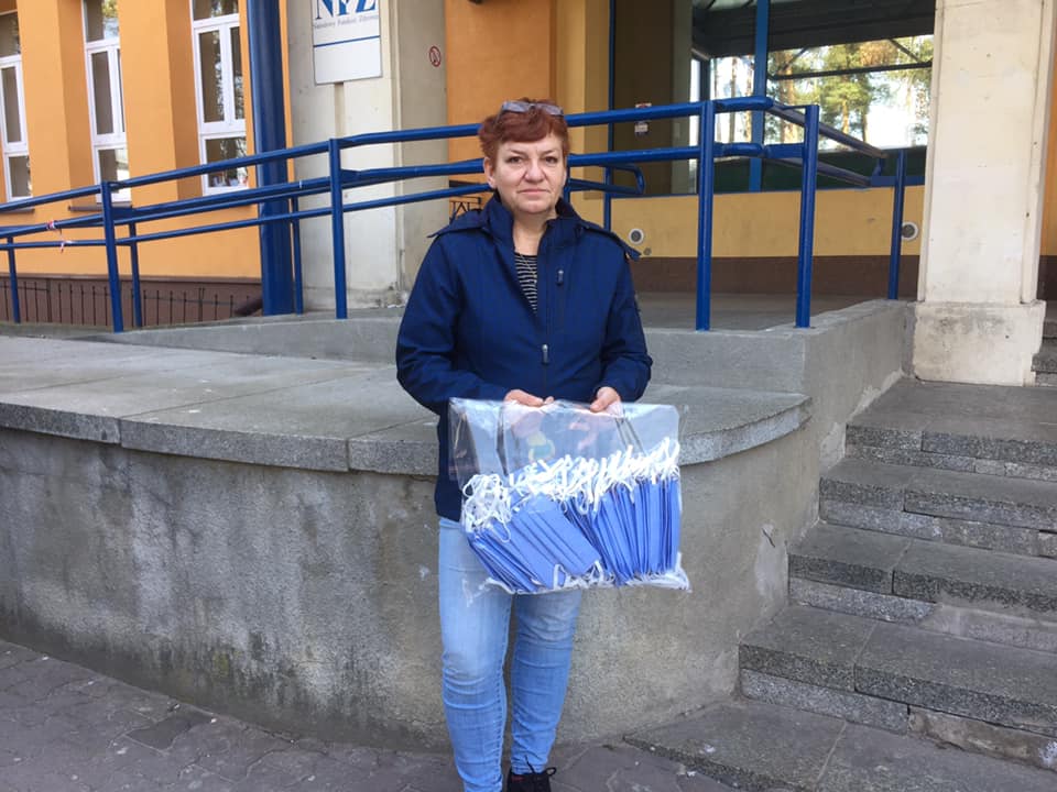 Szpital wspierają przedsiębiorcy, a także osoby prywatne. Pani Justyna mieszkanka Ostrowca Świętokrzyskiego przekazała dziś maseczki ochronne dla personelu, które sama szyje z pozyskanych materiałów.